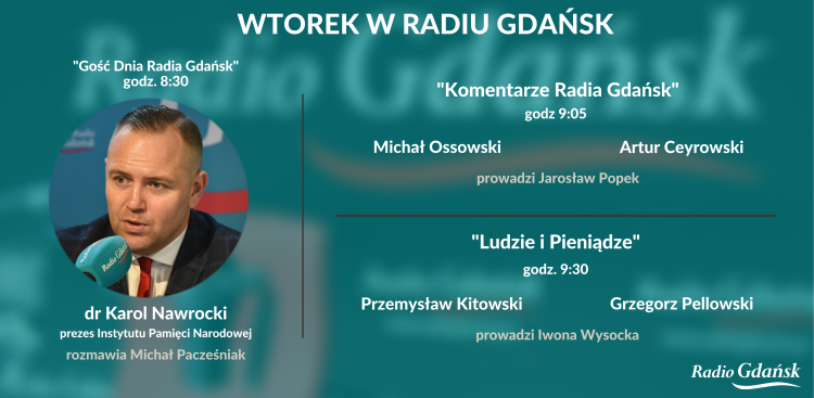 Cmentarz w Katyniu bez powiewającej nad nim polskiej flagi, dekomunizacja przestrzeni publicznej w Polsce (czyli usuwanie pomników propagujących komunizm) i setna rocznica powstania Klubu Sportowego Gedania. Miedzy innymi o tym Michał Pacześniak porozmawia z „Gościem Dnia Radia Gdańsk”, którym będzie dr Karol Nawrocki, prezes Instytutu Pamięci Narodowej. Początek rozmowy punktualnie o godz. 8:30.