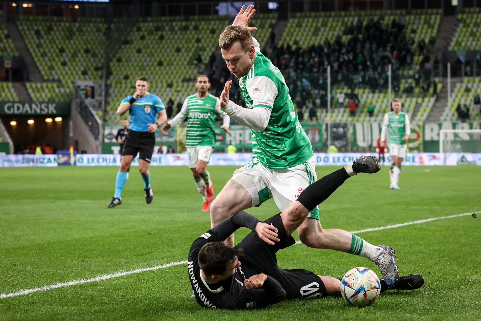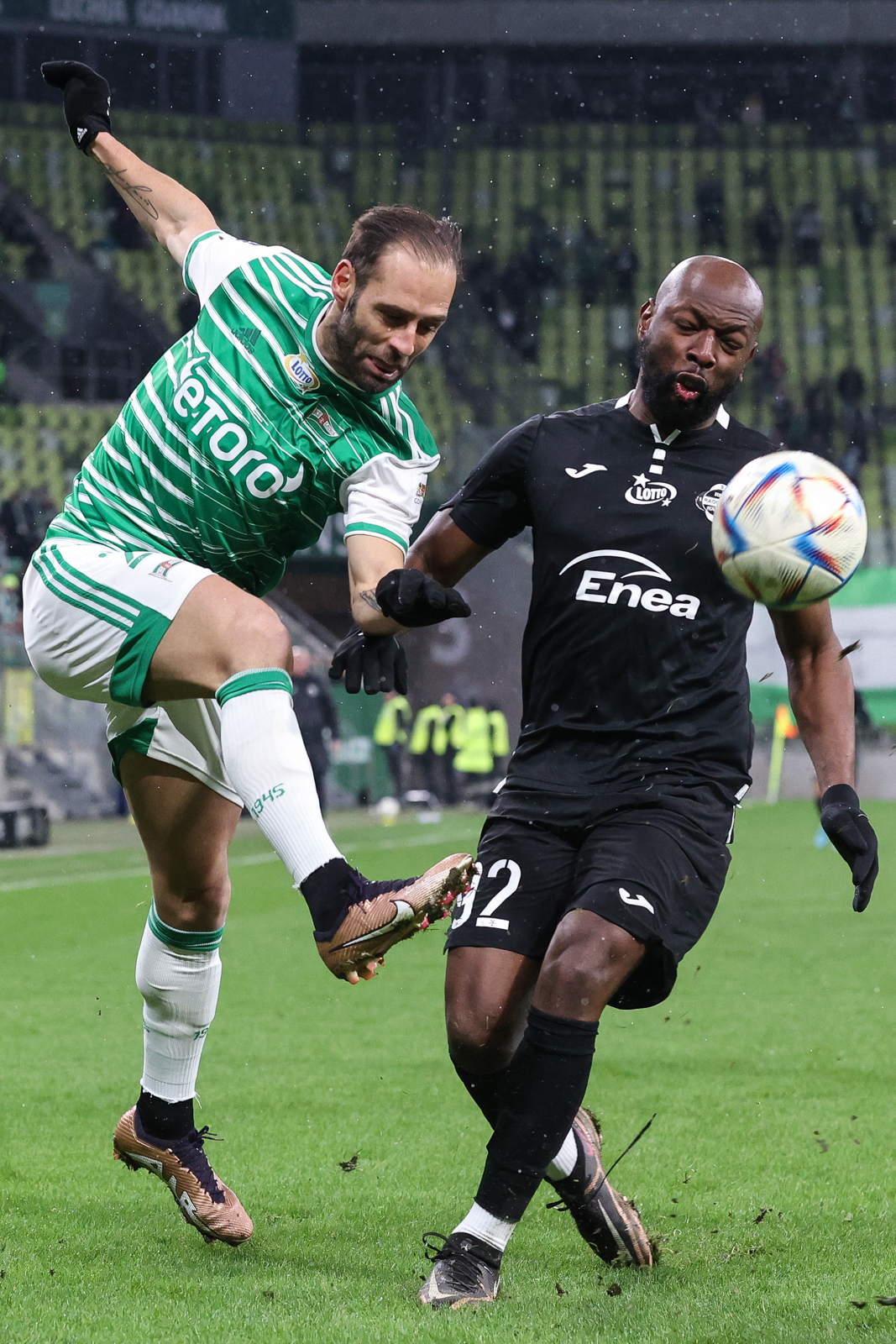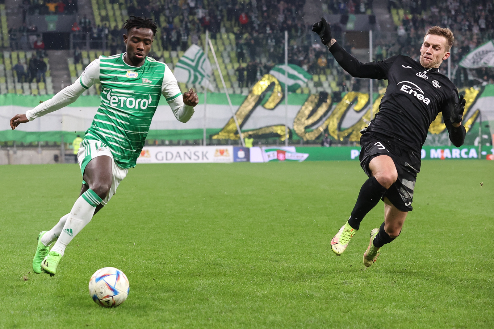 Trudno wyobrazić sobie zespół bardziej jałowy niż Lechia w pierwszej połowie. Miała dużo posiadania piłki, aż 60 proc. i kompletnie nic interesującego nie wykreowała. Na skrzydłach szamotali się Kacper Sezonioenko i Ilkay Durmus, w środku odnaleźć próbowali się Kristers Tobers, Maciej Gajos i Kevin Friesenbichler. Efekt? Ofensywnie kompletnie żaden. Biało-zieloni próbowali przyspieszyć grę podaniami penetrującymi od stoperów. I przyspieszyli.