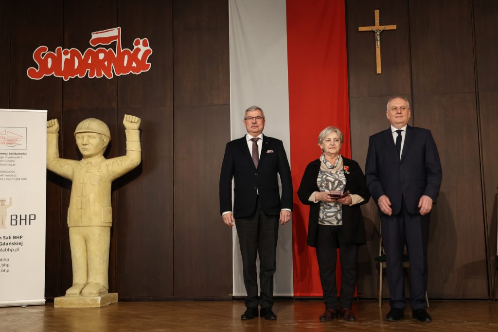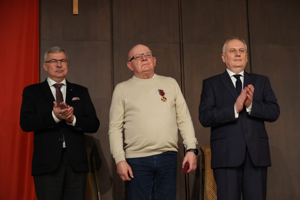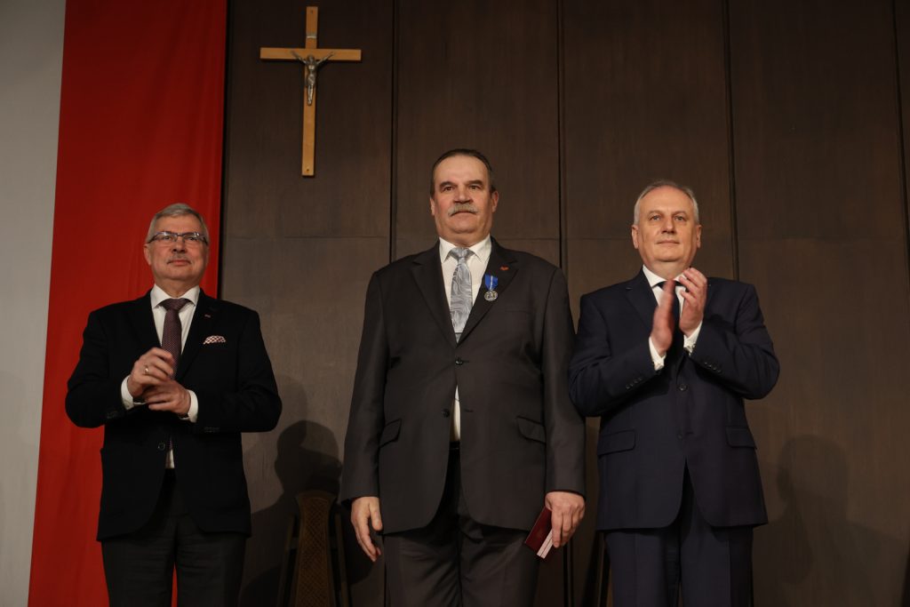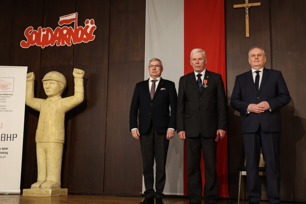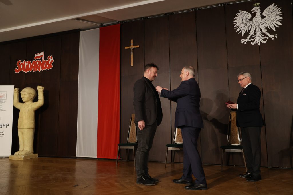 – Datę, czyli 1. marca, jak i miejsce – salę BHP, wybraliśmy na tę uroczystość nieprzypadkowo. To symbole walki o wolną Polskę – podkreśla Dariusz Drelich. – Honorujemy dziś niezłomnych, którzy walczyli, tak jak żołnierze po II wojnie światowej, będąc wiernymi swojej przysiędze i narodowi w walce o wolność. Oni później stworzyli Solidarność. Stworzyli wielki ruch i pokonali komunizm. Ta analogia jest oczywista. Dzięki takim ludziom, jak Żołnierze Niezłomni i bohaterowie Solidarności, żyjemy w wolnym kraju – dodaje.