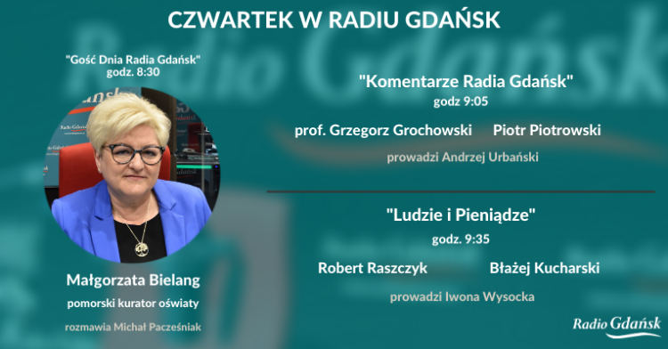Rozpoczynające się wakacje, bezpieczny wypoczynek dzieci i młodzieży, a także trwający jeszcze o nabór do szkół ponadpodstawowych oraz inwestycje w oświacie. Te kwestie Michał Pacześniak poruszy z „Gościem Dnia Radia Gdańsk”, którym będzie Małgorzata Bielang, pomorski kurator oświaty. Początek spotkania punktualnie o godz. 8:30.