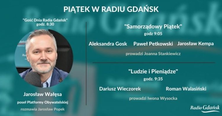 O bieżących tematach politycznych Jarosław Popek po godz. 8:30 porozmawia z „Gościem Dnia Radia Gdańsk”, którym będzie Jarosław Wałęsa, pomorski poseł Koalicji Obywatelskiej.