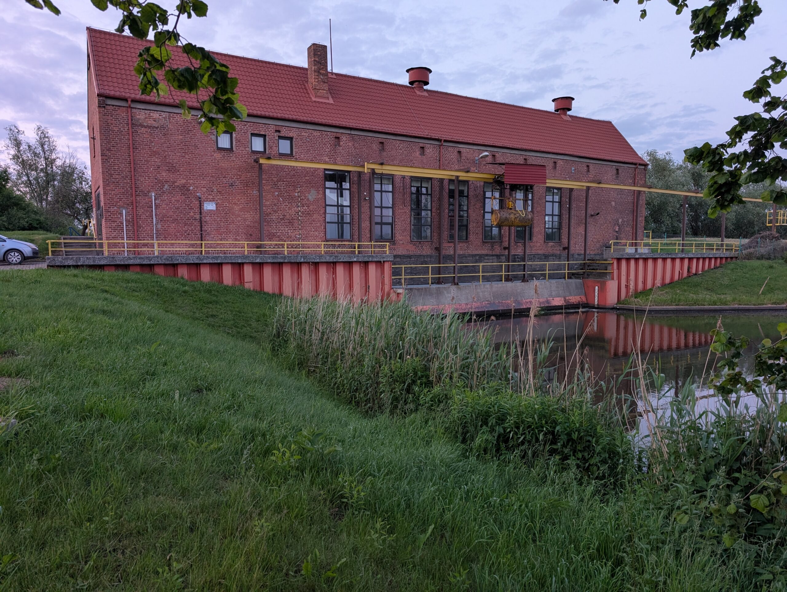 Po drodze zobaczyliśmy wrota przeciwpowodziowe w Bielniku, które kiedyś chroniły Elbląg przed zalaniem. Dziś ich wrota są stale otwarte, ponieważ po wybudowaniu kaskady śluz na Nogacie zagrożenie powodziowe minęło.