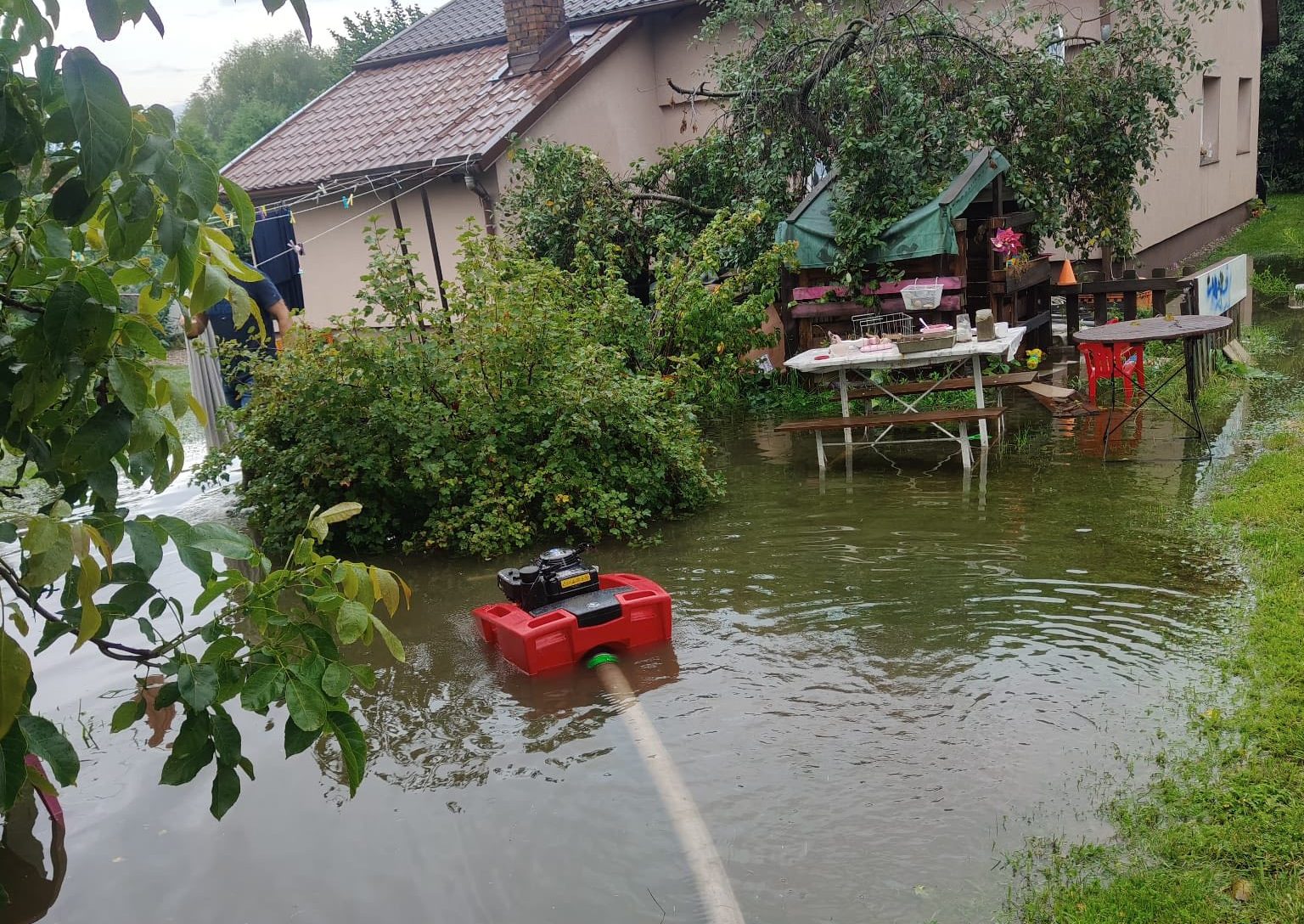 – Wały nieoczyszczone, burzówka wywaliła już wodę. Rzeka na ulicy pod domem. Cała noc nieprzespana. Kochani strażacy byli cztery razy, wypompowali wodę sprzed domu i drogi. Nowe przepisy postawiły jeden dom na podwyższeniu i efekt gotowy. Zalana droga i działka. Przepompownia nie chodzi, szambiarki są pełne, nic nie wybiorą, a oczyszczalnie ich nie przyjmują. Jak przetrwać następne kilka dni bez odprowadzania ścieków? Pozdrowienia dla przekochanych strażaków i strażaczek. Nasi kochani bohaterowie cztery razy bronili mój dom dziś w nocy. Ukłony dla 112. Noc nerwowa, ale nie byliśmy sami – napisała pani Ania z Wiślinki.