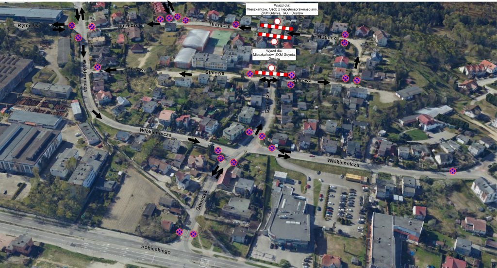 - na odcinku od ul. Stalowej do ul. Hutniczej wjazd będzie możliwy jedynie dla mieszkańców, autobusów oraz pojazdów dostawczych