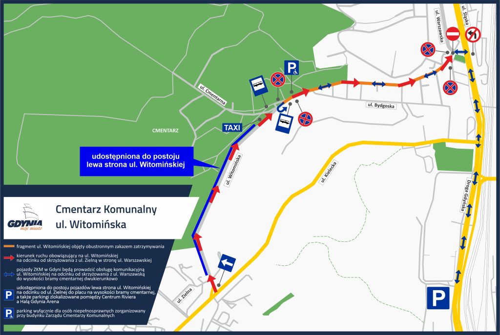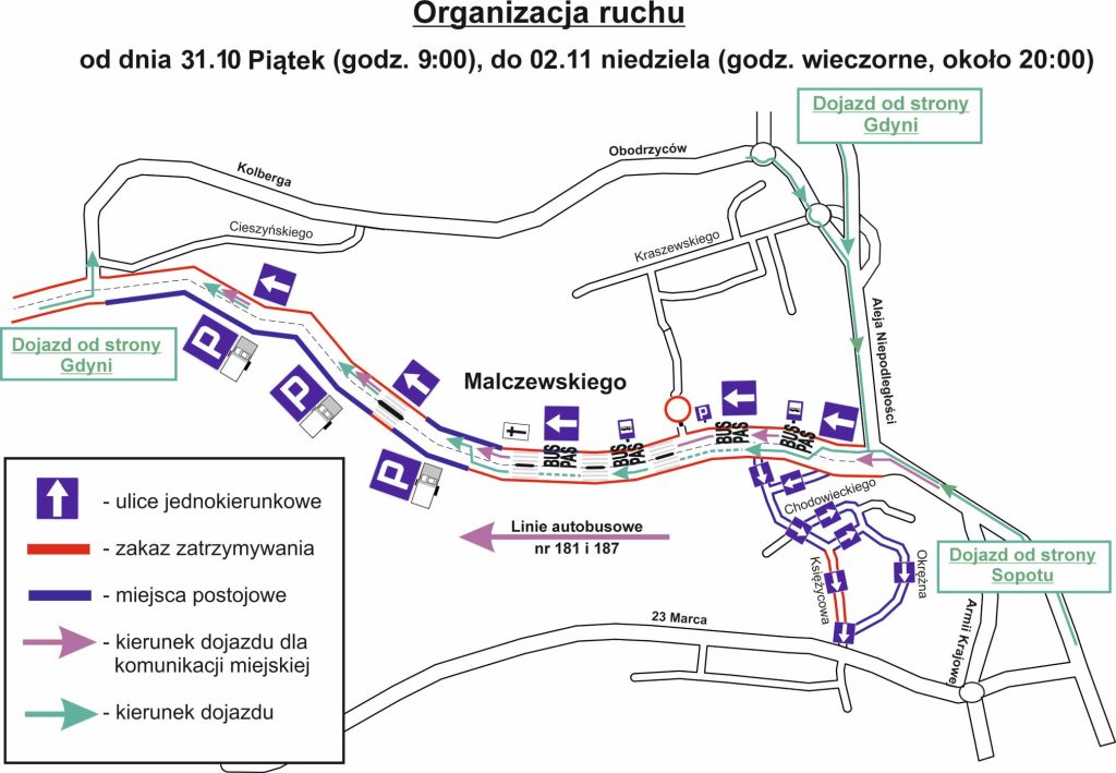 - zamknięta dla ruchu zostanie ul. Rabina dr Maxa Josepha, ul. J. Druyffa, ul. Obrońców Wybrzeża od bramy cmentarza do Ronda Stefana Morawskiego;