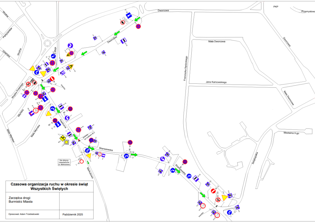 Malborka wprowadza w dniach od 31 października 2025 roku do 3 listopada 2025 roku do wczesnych godzin rannych) następujące zmiany w organizacji ruchu: