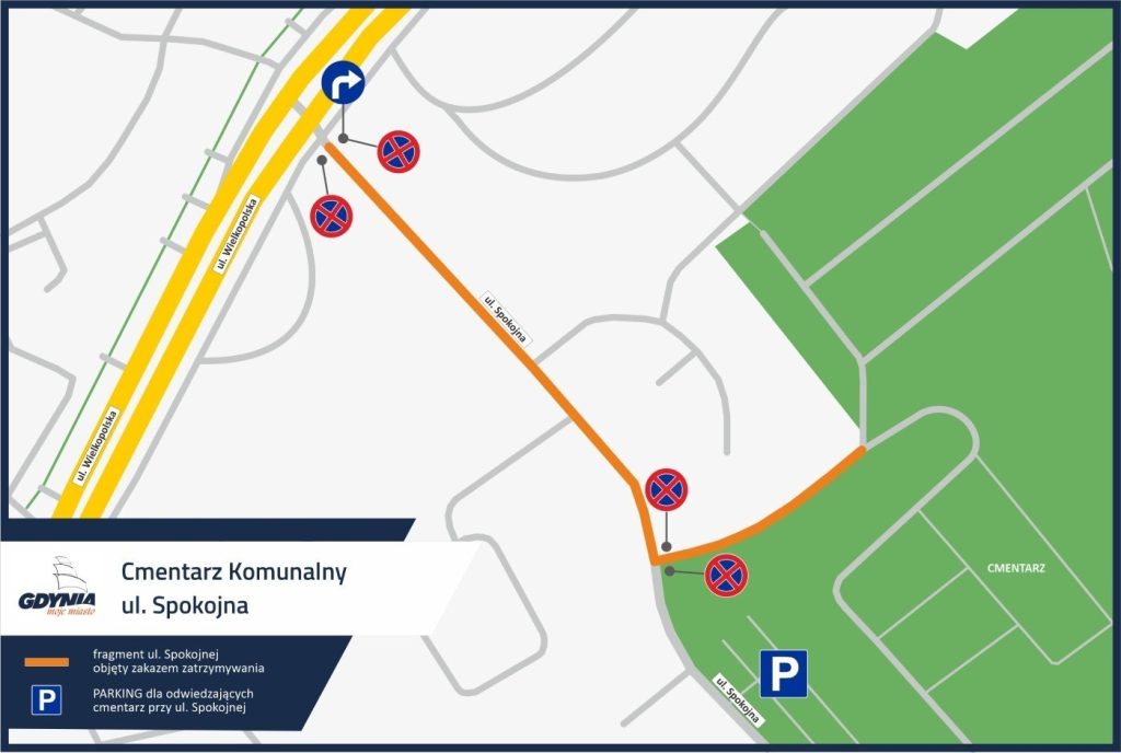 - po prawej stronie ul. Wejhera, od bramy głównej cmentarza w kierunku parkingu, aż do bramy wjazdowej na teren nowej części cmentarza, będzie obowiązywał zakaz zatrzymywania się