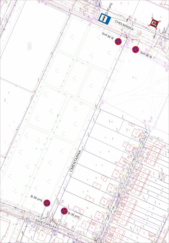 - na całym odcinku ul. Cmentarnej – od ul. Chełmińskiej do ul. Świętopełka – wprowadzony zostanie zakaz zatrzymywania się po obu stronach jezdni