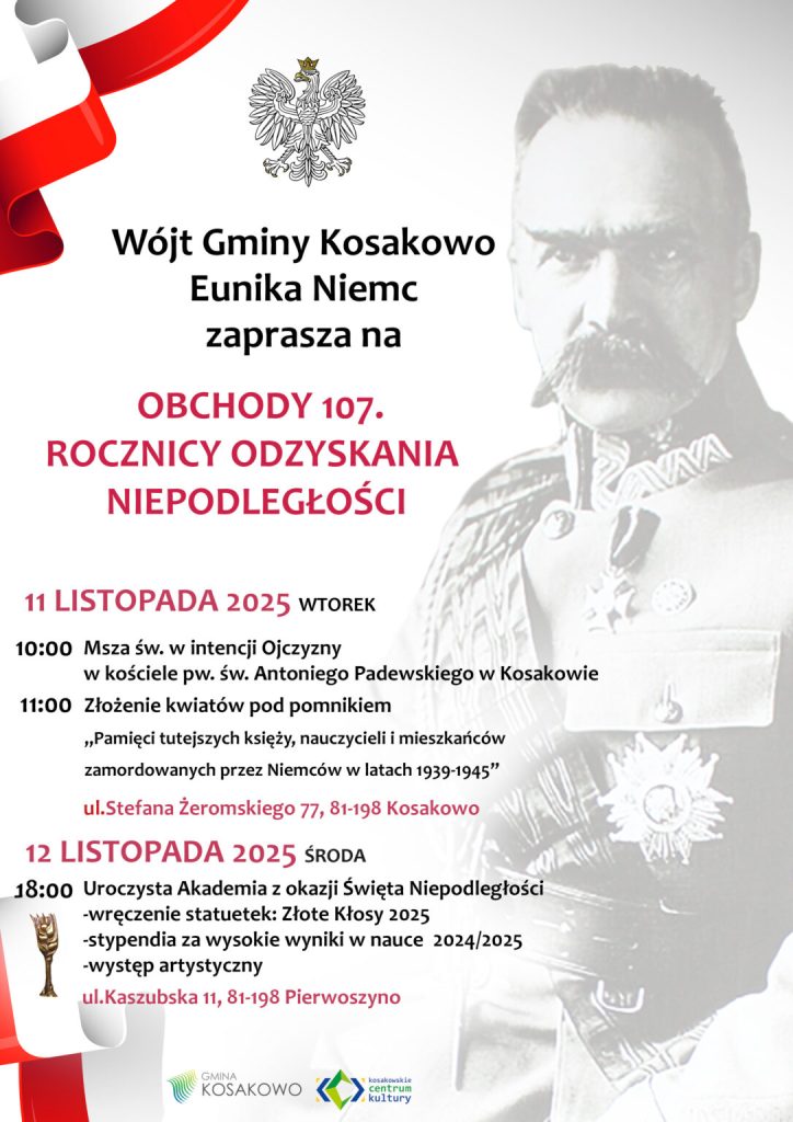 Z kolei 12 listopada o godz. 18:00 odbędzie się uroczysta akademia z występem artystycznym przy ul. Kaszubskiej 11 w Pierwoszynie.