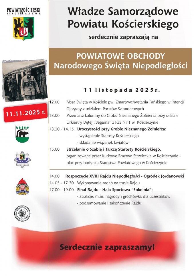Tradycyjnie, będą także wydarzenia towarzyszące, w tym Strzelanie o Tarczę i Szablę Starosty Kościerskiego oraz XVIII Rajd Niepodległości.