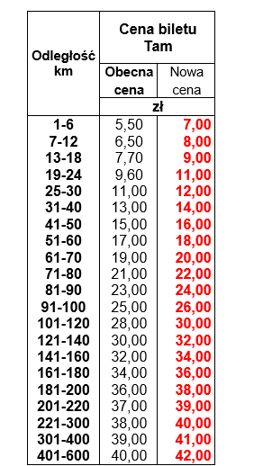 NOWE CENY BILETÓW JEDNORAZOWYCH
