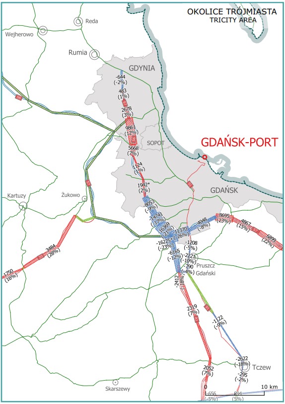 Od wspomnianych reguł są wyjątki, bo po otwarciu Obwodnicy Metropolitalnej Trójmiasta znacząco wzrósł ruch na drodze krajowej nr 20 z Żukowa do Kościerzyny. Z kolei remonty na węźle Gdańsk Południe obwodnicy Trójmiasta spowodowały spadek ruchu w tym miejscu o prawie 30 procent.