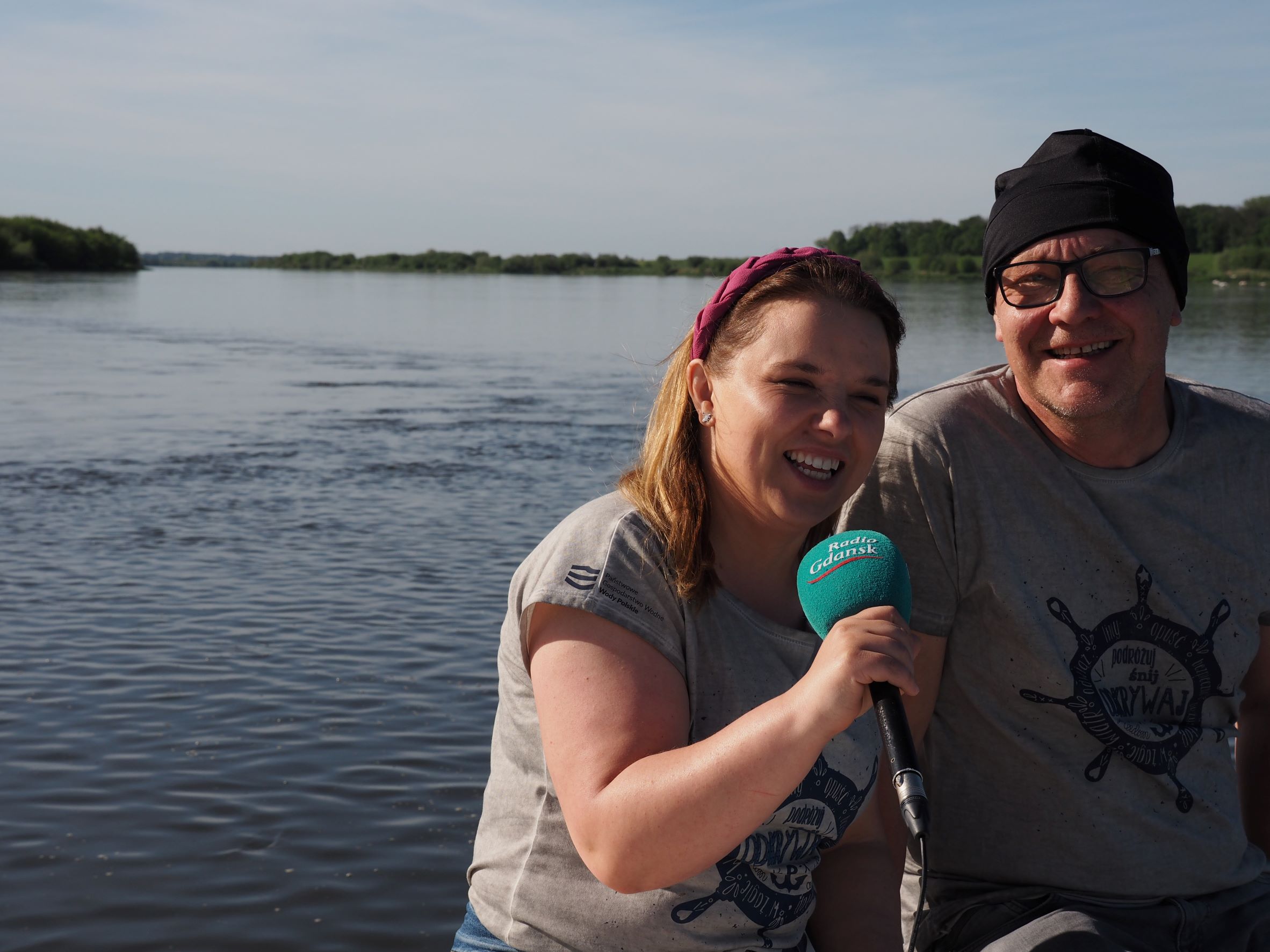 Houseboat Va Bank II, którym podróżuje załoga Radia Gdańsk wypłynął dziś (w środę, 18 maja) z mariny w Grudziądzu. Pogoda na Wiśle rozpieszczała – było słonecznie i bezwietrznie, a rzeka była tak spokojna, że jej nurt można było czytać niemal bez wypatrywania wodnych znaków. – Sami nie mielibyśmy takiej odwagi, ale na pokładzie był z nami doskonały „tłumacz” rzecznych fal: Tomasz Skowroński z Wód Polskich – opowiadają członkowie naszej załogi.