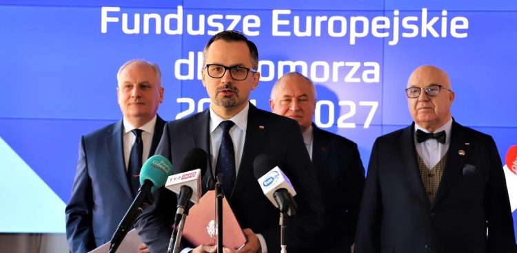 Konferencja prasowa wiceministra oraz wojewody pomorskiego Dariusz Drelicha odbyła się w poniedziałek w Pomorskim Urzędzie Wojewódzkim w Gdańsku i dotyczyła przekazania środków z budżetu państwa na dofinansowanie wkładu własnego w ramach programu regionalnego Fundusze Europejskie dla Pomorza 2021-2027.