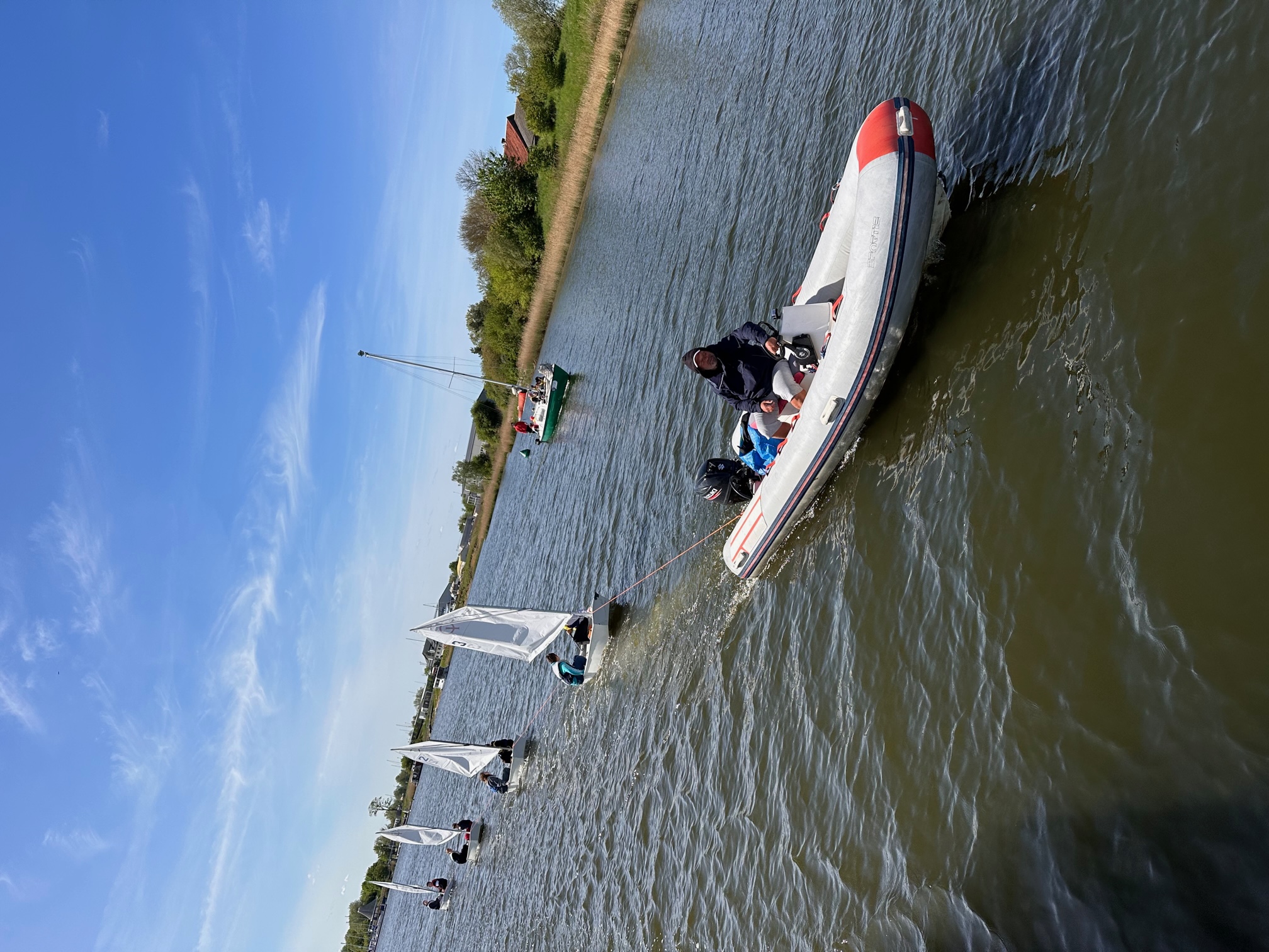 Przed wypłynięciem z Błotnika odwiedził nas Janusz Goliński, wójt gminy Cedry Wielkie, który w rozmowie z Włodzimierzem Raszkiewiczem przedstawił nam kilka ciekawostek związanych z zarządzaną przez niego gminą. Okazuje się, że nazwa Cedrów Wielkich wcale nie pochodzi od cedrów – te drzewa kojarzą się raczej z krajami śródziemnomorskimi niż z polskimi Żuławami. Według wójta na tych terenach panował kiedyś książę Cedrus, od imienia którego wzięło zresztą nazwę stowarzyszenie Gdański Klub Morski „Cedrus”. Rozmówca Włodzimierza Raszkiewicza opowiedział też o realizowanym dzięki środkom unijnym projekcie edukacji morskiej, a także o… tulipanach – w Błotniku jest realizowana akcja „O Rany, Tulipany”.