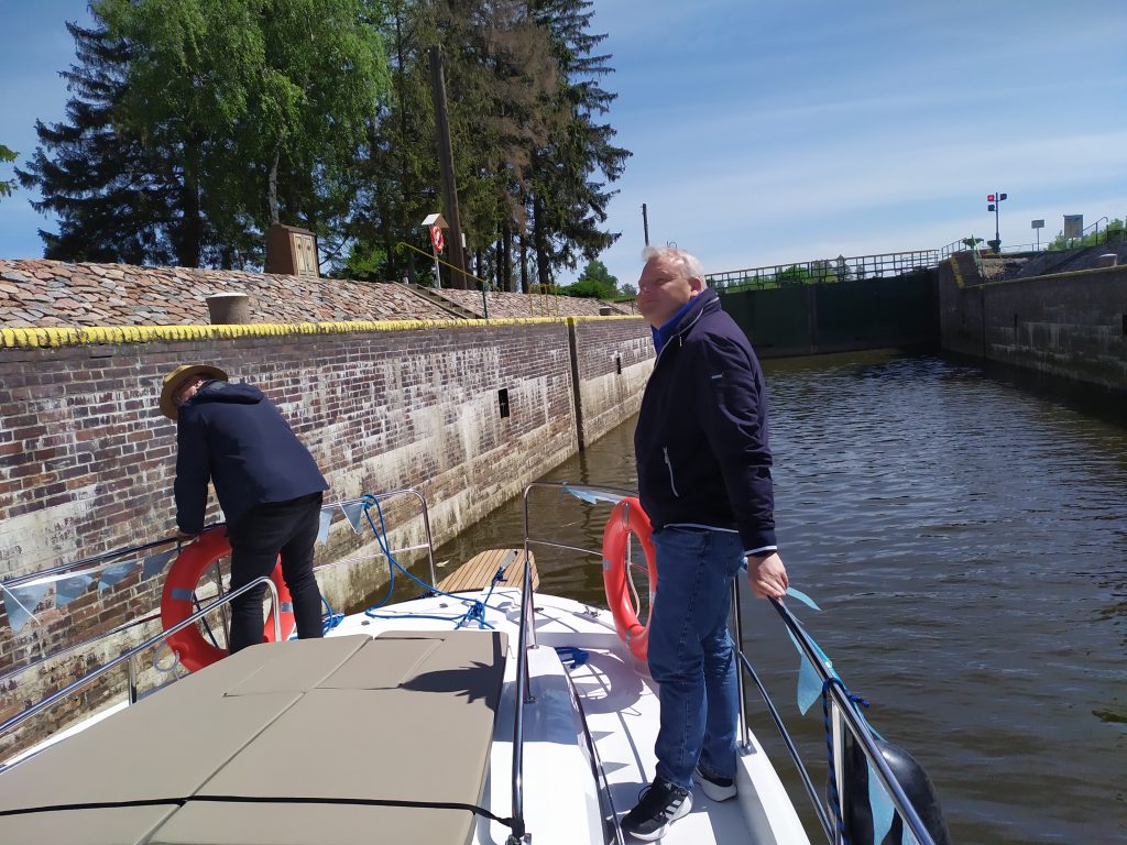 Na pokład zabraliśmy Tomasza Wątrobę, zastępcę dyrektora Zarządu Zlewni w Elblągu. Pan Tomasz wyjaśnił na naszej antenie, jaką rolę odgrywa jaz, do czego służy śluza i dlaczego z punktu widzenia wodniaków bobry robią krecią robotę.
