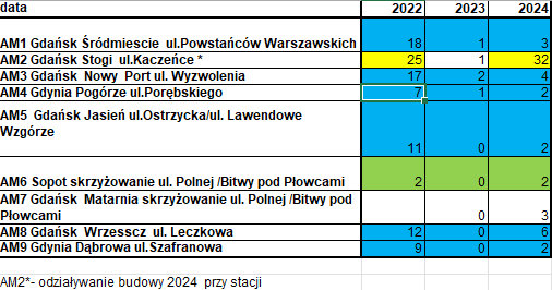 W minionym roku stacja w Śródmieściu Gdańska zanotowała trzy takie incydenty, w Nowym Porcie cztery, a we Wrzeszczu sześć.