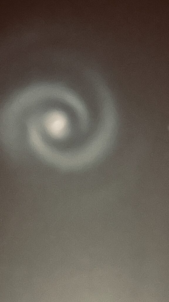 Wyjaśnił, że podczas planowanej deorbitacji, zanim drugi stopień rakiety wejdzie w atmosferę i spłonie, często dochodzi do zrzutu resztek paliwa. Dzieje się to już w przestrzeni kosmicznej – kilkaset kilometrów nad Ziemią – gdzie nie ma powietrza, więc wyrzucone gazy nie rozpraszają się chaotycznie, lecz tworzą symetryczne struktury. Wskazał również, że jeśli rakieta obraca się wokół własnej osi (co jest często celowe, by ustabilizować lot), wypuszczane z dysz paliwo układa się w kształt spirali lub wiru, przypominający świetlistą galaktykę.