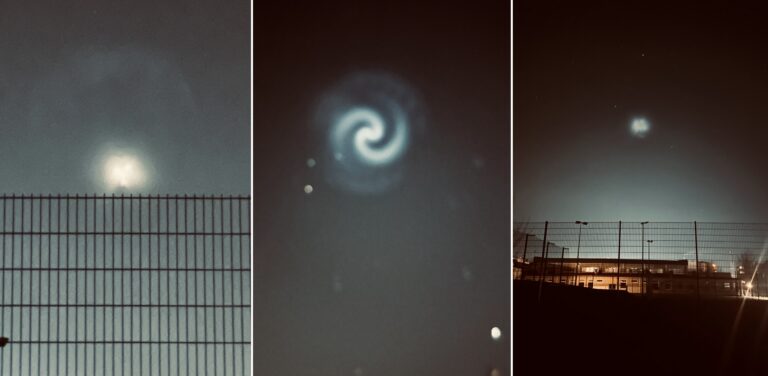 Wyjaśnił, że podczas planowanej deorbitacji, zanim drugi stopień rakiety wejdzie w atmosferę i spłonie, często dochodzi do zrzutu resztek paliwa. Dzieje się to już w przestrzeni kosmicznej – kilkaset kilometrów nad Ziemią – gdzie nie ma powietrza, więc wyrzucone gazy nie rozpraszają się chaotycznie, lecz tworzą symetryczne struktury. Wskazał również, że jeśli rakieta obraca się wokół własnej osi (co jest często celowe, by ustabilizować lot), wypuszczane z dysz paliwo układa się w kształt spirali lub wiru, przypominający świetlistą galaktykę.