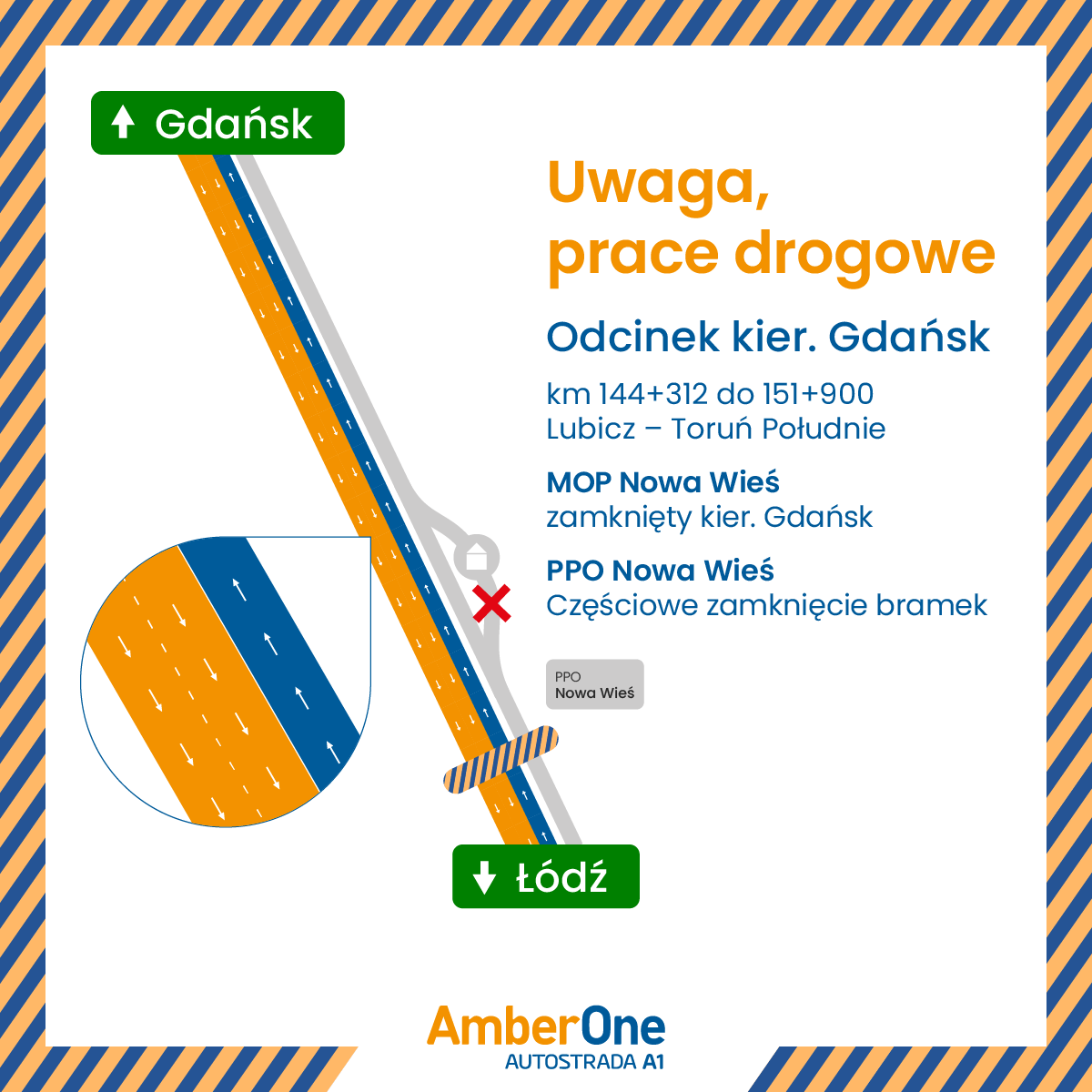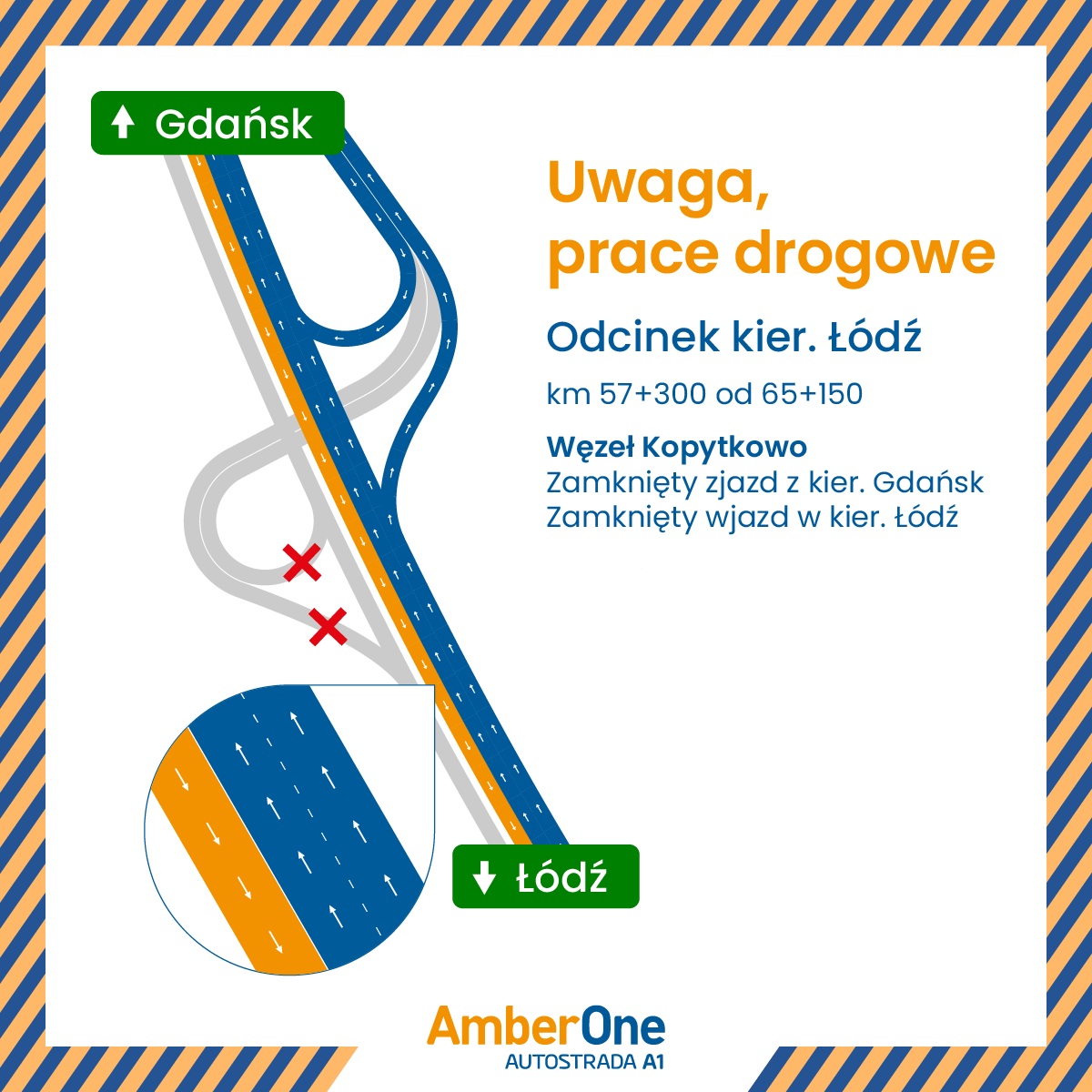 Od poniedziałku prace przenoszą się w okolice 60. kilometra trasy w kierunku Łodzi, gdzie remontowany będzie odcinek między węzłami Kopytkowo i Warlubie. Jeden wąski pas dotyczyć będzie jadących na południe. Nie da się jednak zjechać od strony Gdańska do Kopytkowa i włączyć tędy do ruchu w stronę południa.
