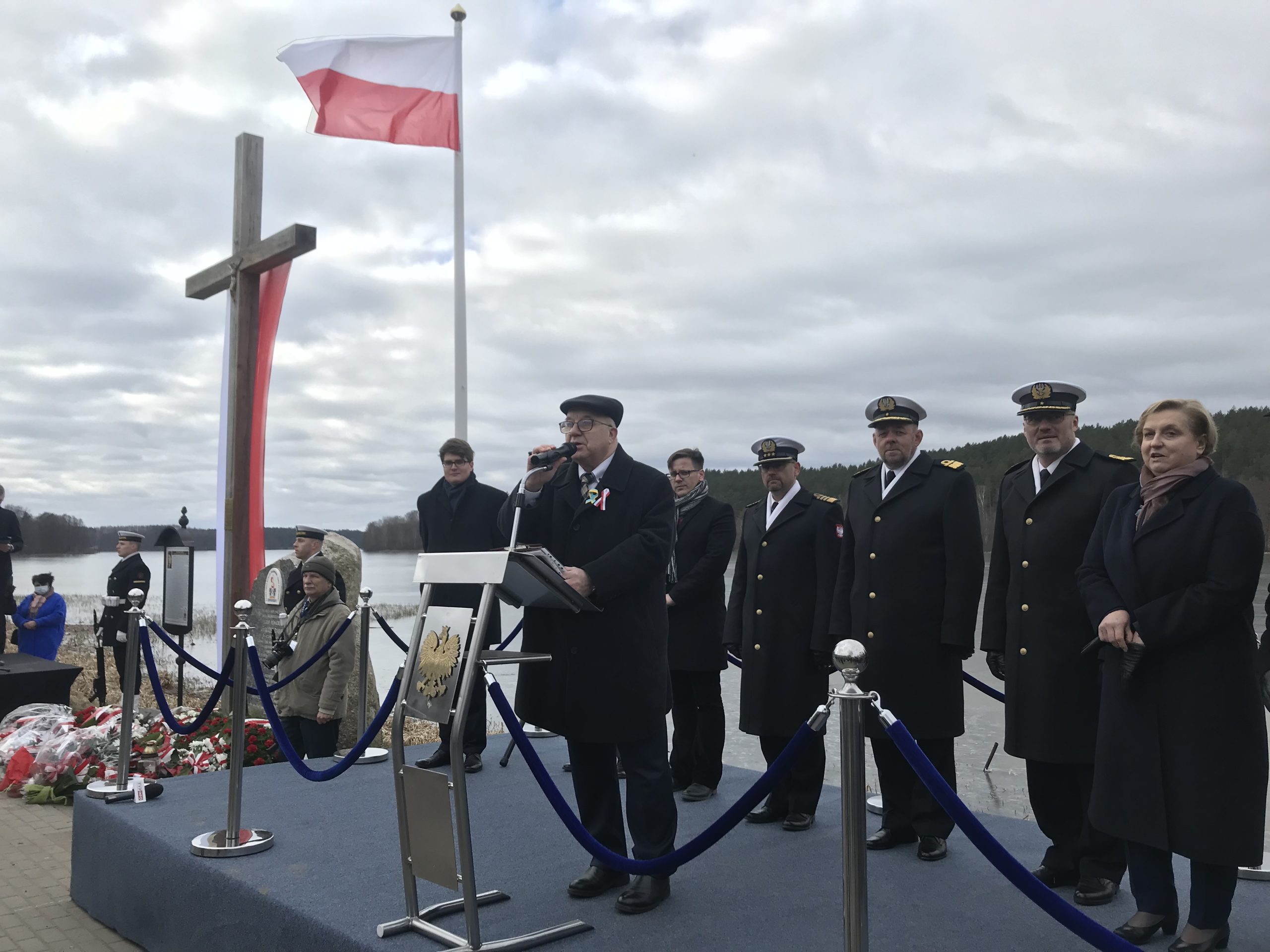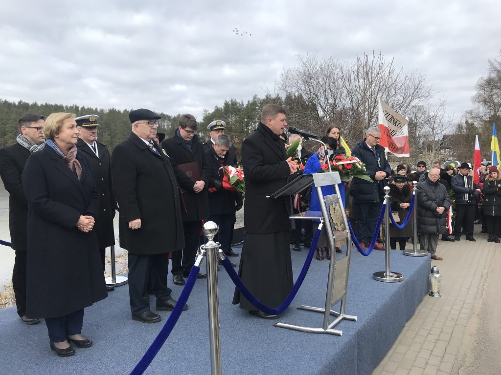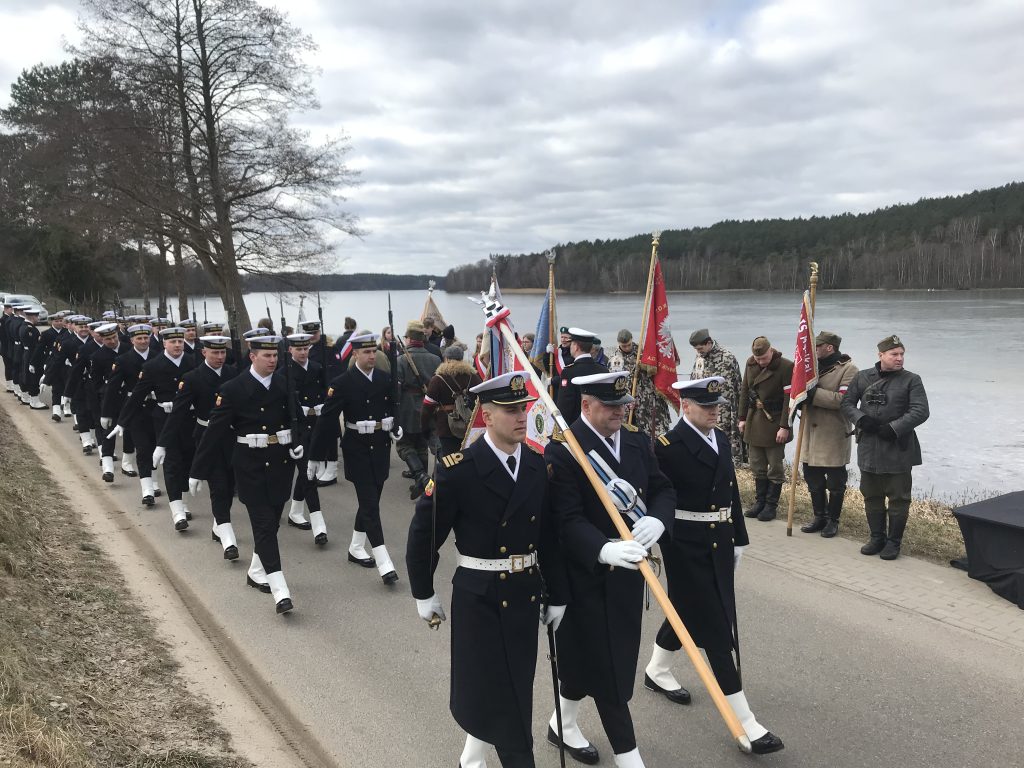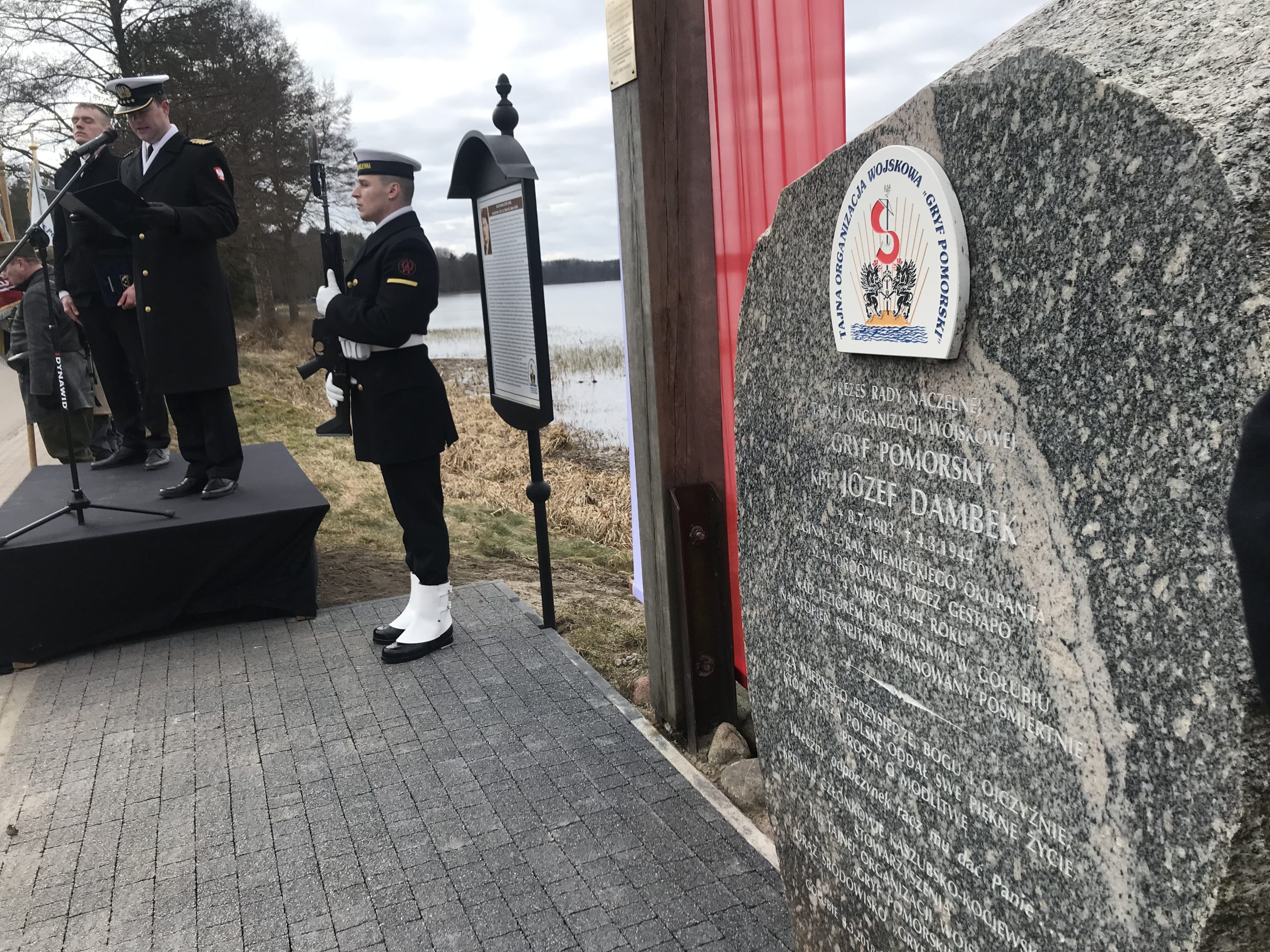 Po mszy świętej oficjalne uroczystości przeniosły się nad Jezioro Dąbrowskie, gdzie znajduje się miejsce upamiętniające śmierć kpt. Dambka.
