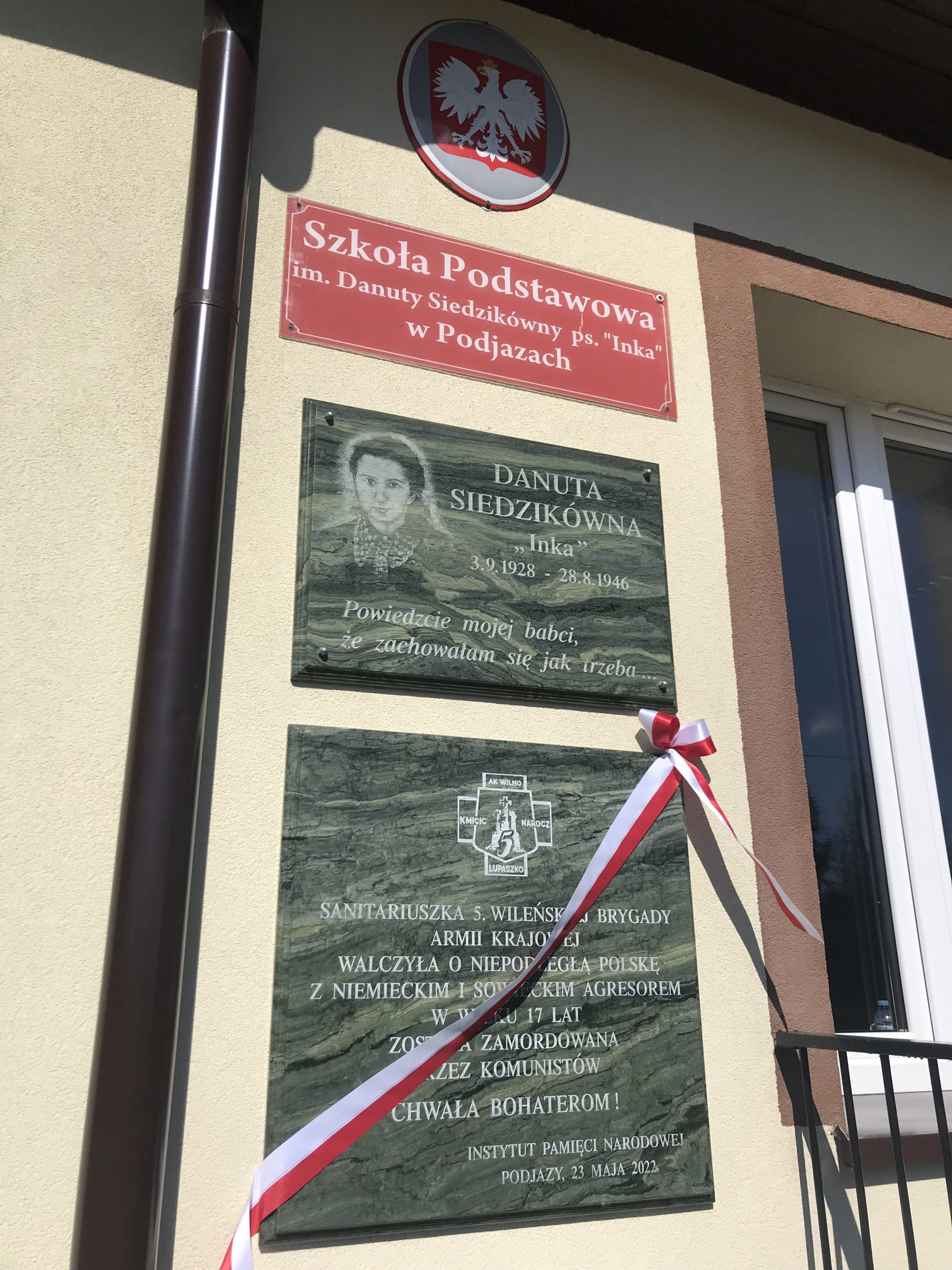 Tego dnia świętowano również 13. rocznicę nadania patronki tej szkole. Placówka jako pierwsza w kraju otrzymała imię Danuty Siedzikówny. Z tej okazji odsłonięto tablicę uzupełniającą dotychczasowe upamiętnienie z informacją, kim była i jak zginęła Inka.
