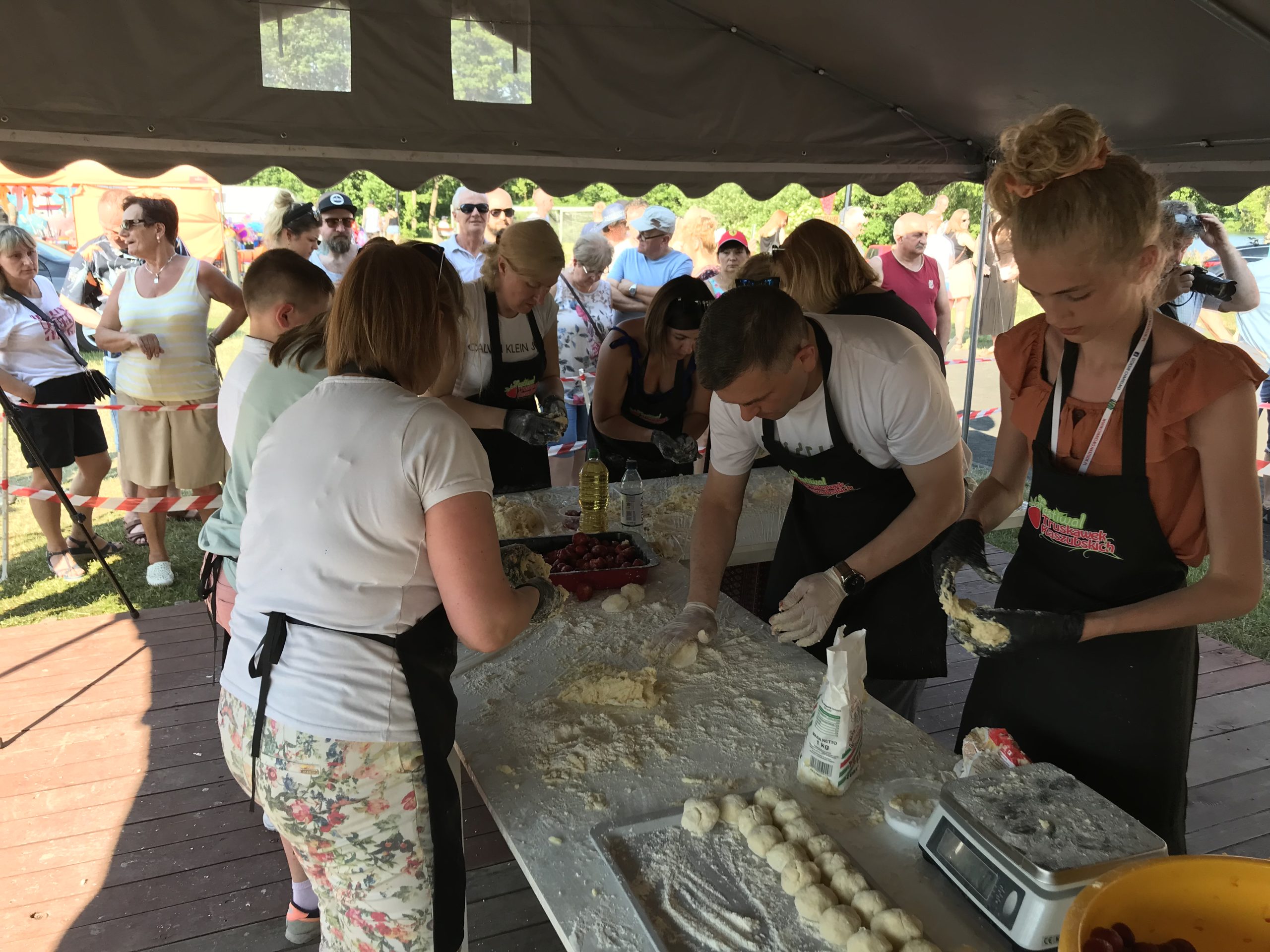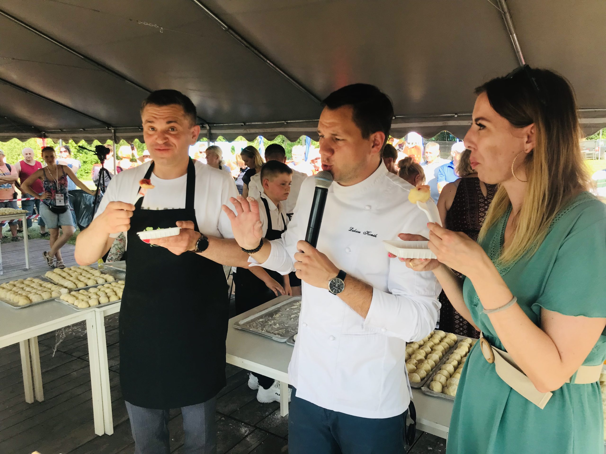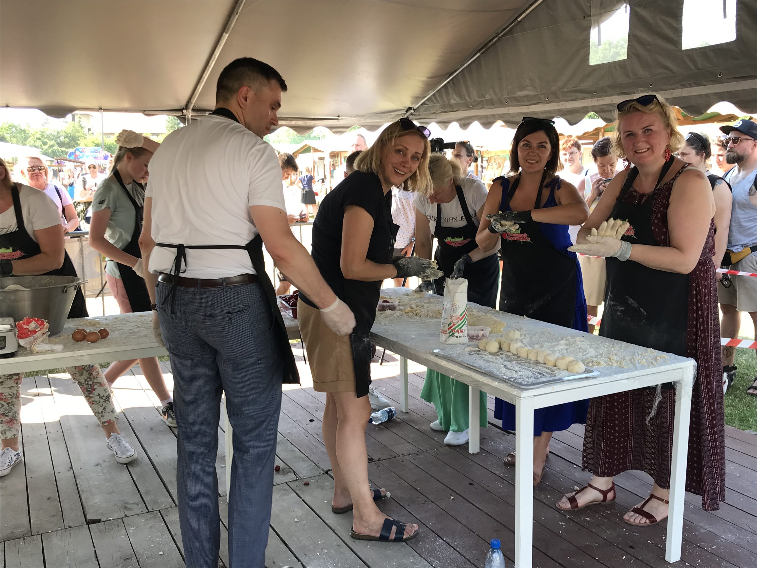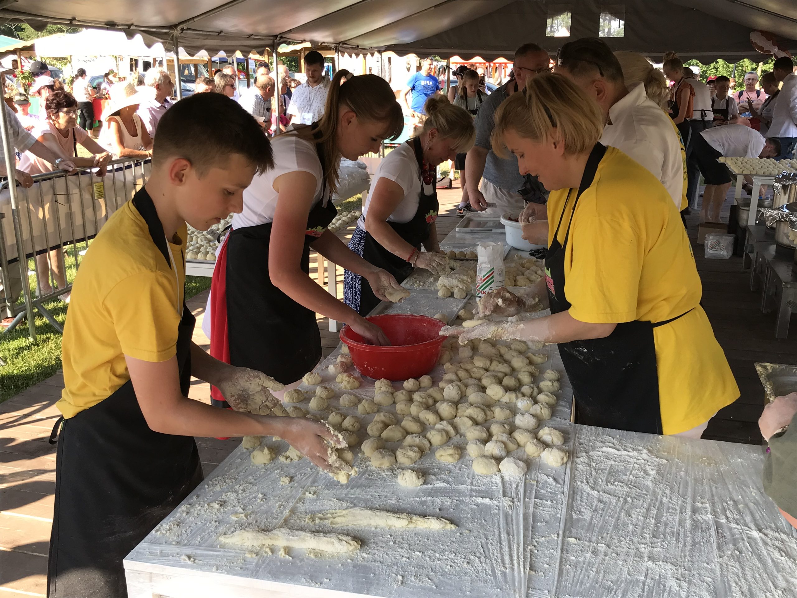 – W tym roku zdecydowaliśmy się przygotować knedle. Ostatni rekord udało nam się ustanowić bardzo sprawnie. Rok temu ulepiliśmy ponad dwa tysiące pierogów, dlatego tym razem podnieśliśmy poprzeczkę i są knedle. Takiego rekordu, jak lepienie knedli na czas, jeszcze nikt w Polsce nie ustanawiał, więc dziś zrobiliśmy to pierwsi – mówi Łukasz Konik, mistrz kuchni oraz organizator truskawkowych rekordów Polski.