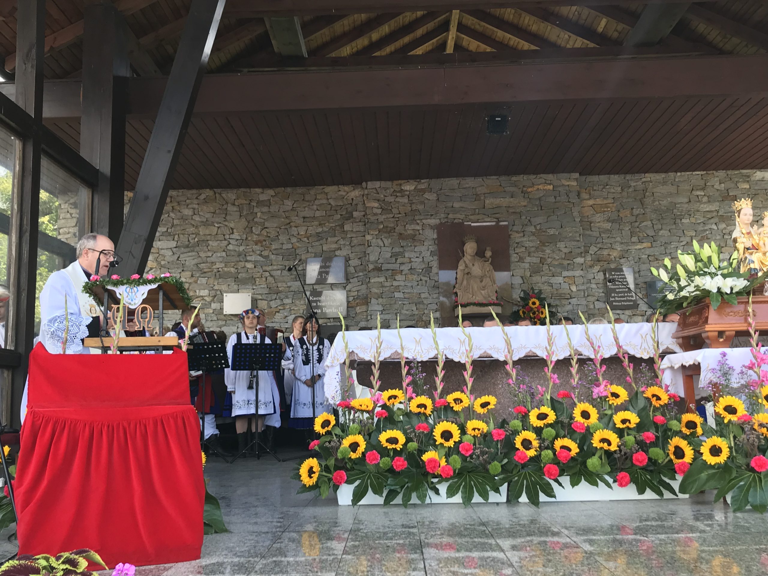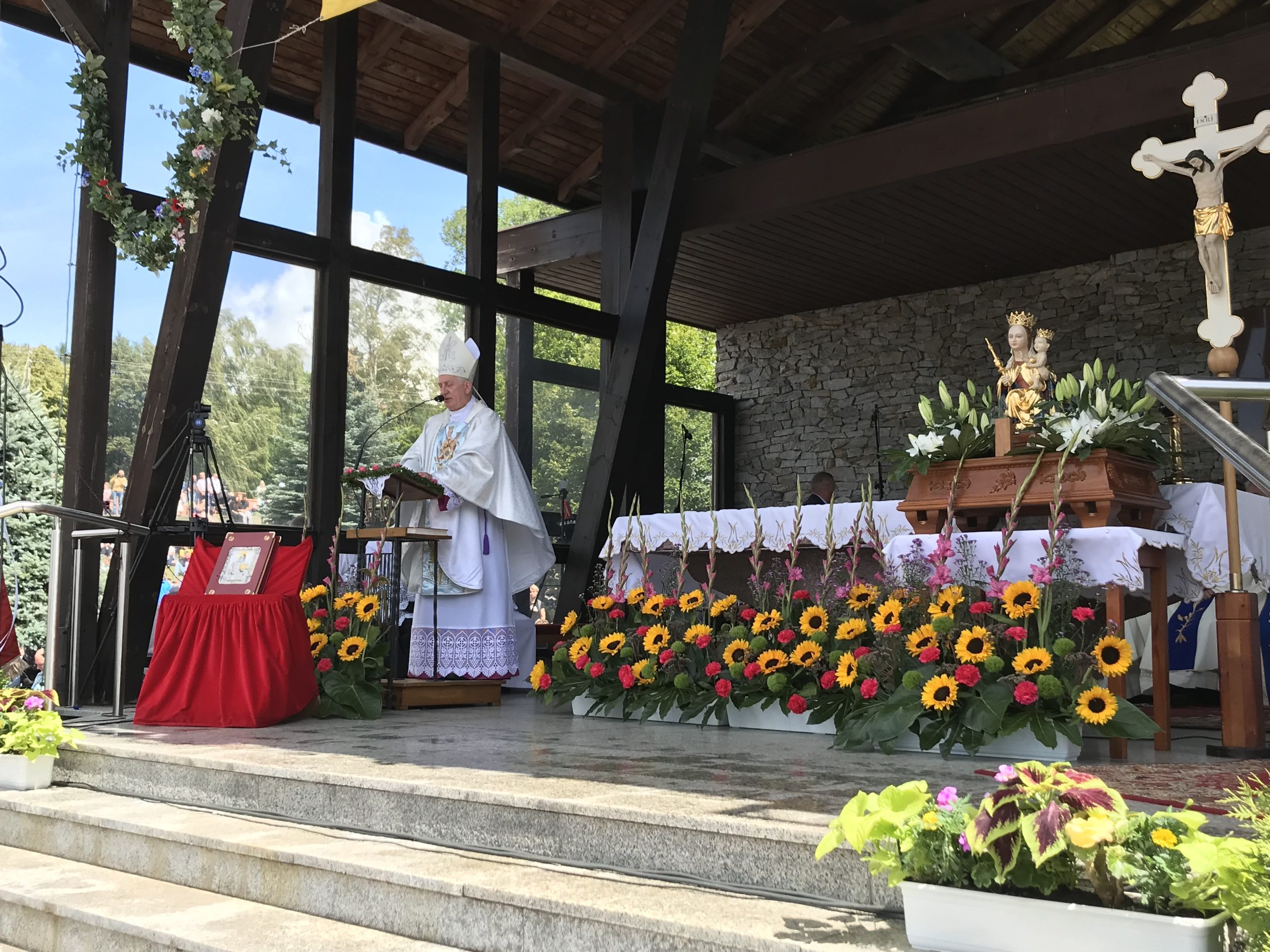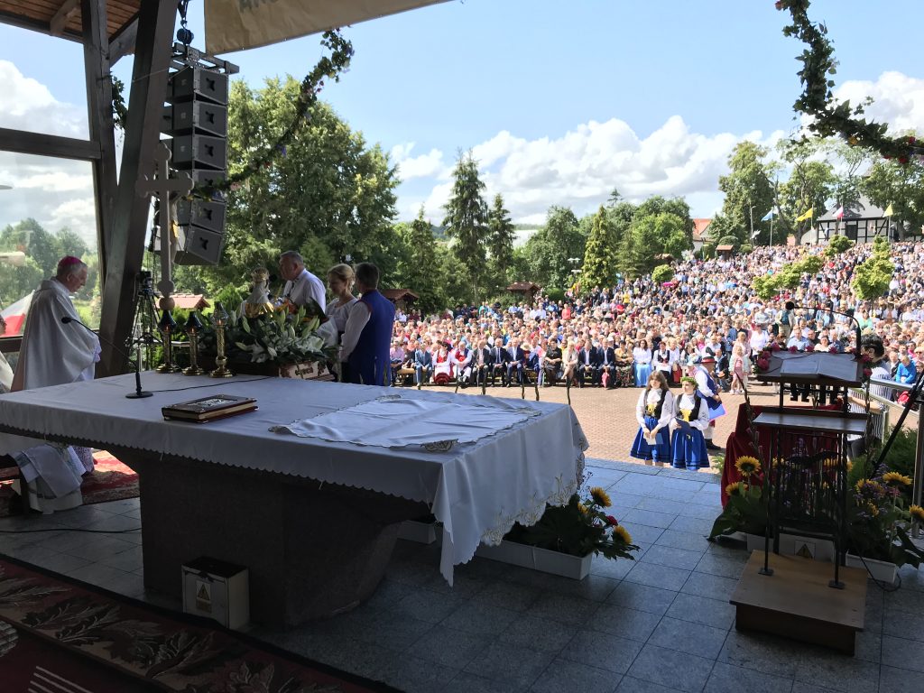 – Przybyliśmy tu dzisiaj, aby dziękować Panu Chrystusowi za wstawiennictwem naszej Matki, za to wszystko, co stało się naszym udziałem w naszym niełatwym życiu. Jesteśmy tu pomimo różnych trudów, niepokojów obecnego czasu, pomimo urlopów i wakacji, trudnej pracy i wielu innych przeciwności, aby zawierzyć Chrystusowi i Królowej Kaszub nasze życie, pielgrzymowanie, trudy i cierpienie. Niech te dary miłości, które otrzymujemy w Eucharystii, pozwolą na to, aby nasze życie, pomimo wielu przeciwności, było dobrym życiem – zaznaczył przed mszą biskup Ryszard Kasyna.