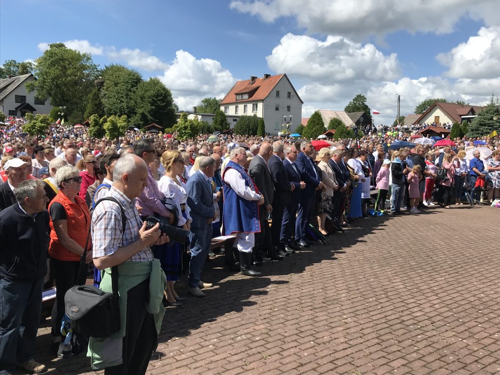 – Spotykamy się u stóp naszej matki, Pani Sianowskiej Królowej Kaszub, w tym sanktuarium. Spotykamy się z naszą matką i przypominamy sobie boże słowo. Przypominamy sobie, że jesteśmy bożą rodziną. Spotykamy się w tym miejscu, albowiem jest to miejsce rodzinnego wzrastania. Pragniemy jako lud kaszubski, wspólnota diecezjalna w tym niełatwym czasie zmagań wielorakich, także zmagań o sens naszego ziemskiego pielgrzymowania, zmagań o kształt Europy, Polski, w sposób szczególny patrząc na nasze życie, naszych rodzin, prosić Jezusa i naszą Matkę Panią Sianowską o opiekę, wsparcie, by okryła nas szkaplerzem jak tarczą, by otuliła nas matczynym ciepłem. Byśmy mogli od niej zaczerpnąć siłę, moce do naszego ziemskiego pielgrzymowania – mówił biskup podczas homilii.
