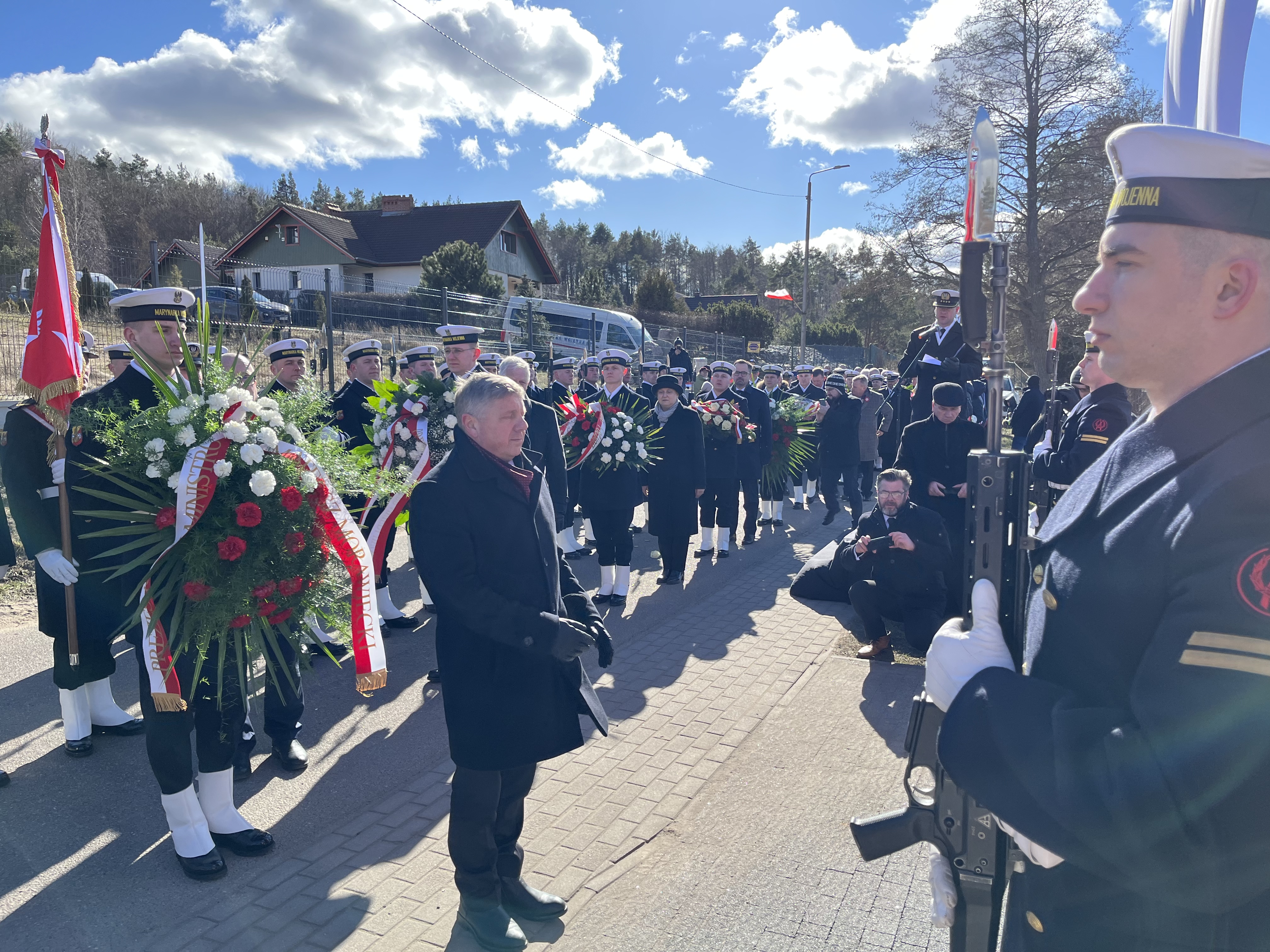 – Pamiętajmy, że jest to pamięć o zwycięzcach. Oni odnieśli zwycięstwo, a wydawało się, że sytuacja jest beznadziejna. Jeszcze we wrześniu 1939 roku rusza ogromna machina niszczenia polskości i mordowania Polaków na tych ziemiach, to co nazywamy Zbrodnią Pomorską. W Piaśnicy, Szpęgawsku, w Dolinie Śmierci pod Chojnicami i w wielu innych miejscach. Najpierw elita, a potem wszyscy Polacy są po prostu mordowani. Rusza budowa obozu koncentracyjnego w Stutthofie. Masowe i przymusowe wysiedlenia. Tu na tej ziemi nie miało być w ogóle Polski. Co więcej, w starciu z tą potężną machiną podejmują walkę. Wydawałoby się – walkę beznadziejną. Co więcej, właściwie jedyna alternatywa, jedyne, na co można mieć realną nadzieję, to zamiana jednej okupacji na drugą – na okupację sowiecką. Faktycznie, jak tak się dzieje, to ten proces niszczenia polskich patriotów pod okupacją sowiecką jest kontynuowany. Znów sytuacja wydawałoby się beznadziejnej walki, ale spotykamy się tu teraz i tu jest Polska. Oni – żołnierze „Gryfa Pomorskiego” zwyciężyli. W tym momencie musimy powiedzieć: „nigdy więcej walki w proporcji stu do jednego, walki partyzanckiej wśród polskiej ludności cywilnej, nigdy sytuacji, gdy Polacy na polskiej ziemi są mordowani” – mówił wiceminister Funduszy i Polityki Regionalnej Marcin Horała.