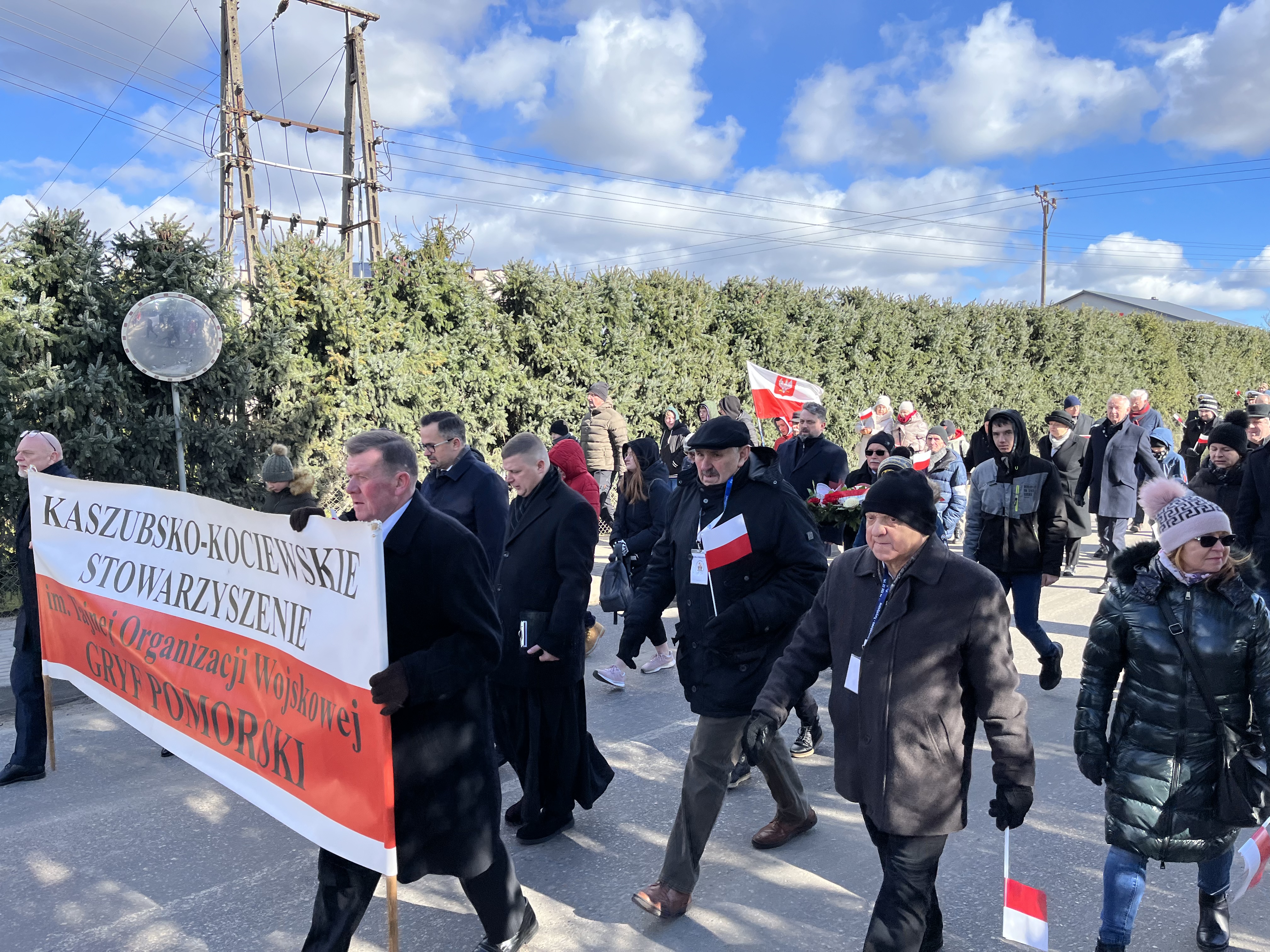 – Nasze Kaszubsko-Kociewskie Stowarzyszenie im. Tajnej Organizacji Wojskowej „Gryf Pomorski” osiągnęło długo oczekiwany rezultat. Byliśmy wnioskodawcami projektu, który się ziścił, o ustanowieniu przez Sejm RP 2 października Narodowego Dnia Pamięci Ofiar Niemieckiej Zbrodni Pomorskiej 1939 roku. To daje szansę, że cała Polska dowie się o patriotycznym Pomorzu, ale także o żołnierzach niezłomnych, niepokornych z „Gryfa Pomorskiego”. W tym miejscu apeluję w imieniu całego środowiska gryfowskiego do decydentów o powołanie muzeum „Gryfa Pomorskiego”. Byliśmy skuteczni w sprawie Niemieckiej Zbrodni Pomorskiej 1939 roku, to mam nadzieję, że będziemy skuteczni i w tej sprawie. Nasz głos – spotęgowany głosem wielotysięcznym członków „Gryfa”, płynący z setek bunkrów i ziemianek, w których się ukrywali i z których szli na bój o godność, o honor, w imię zawołania: Bóg, Honor, Ojczyzna – niech będzie usłyszany. Prosimy wspólnie o to, im i nam to się należy. Cześć i chwała bohaterom „Gryfa Pomorskiego” – apelował Dambek.