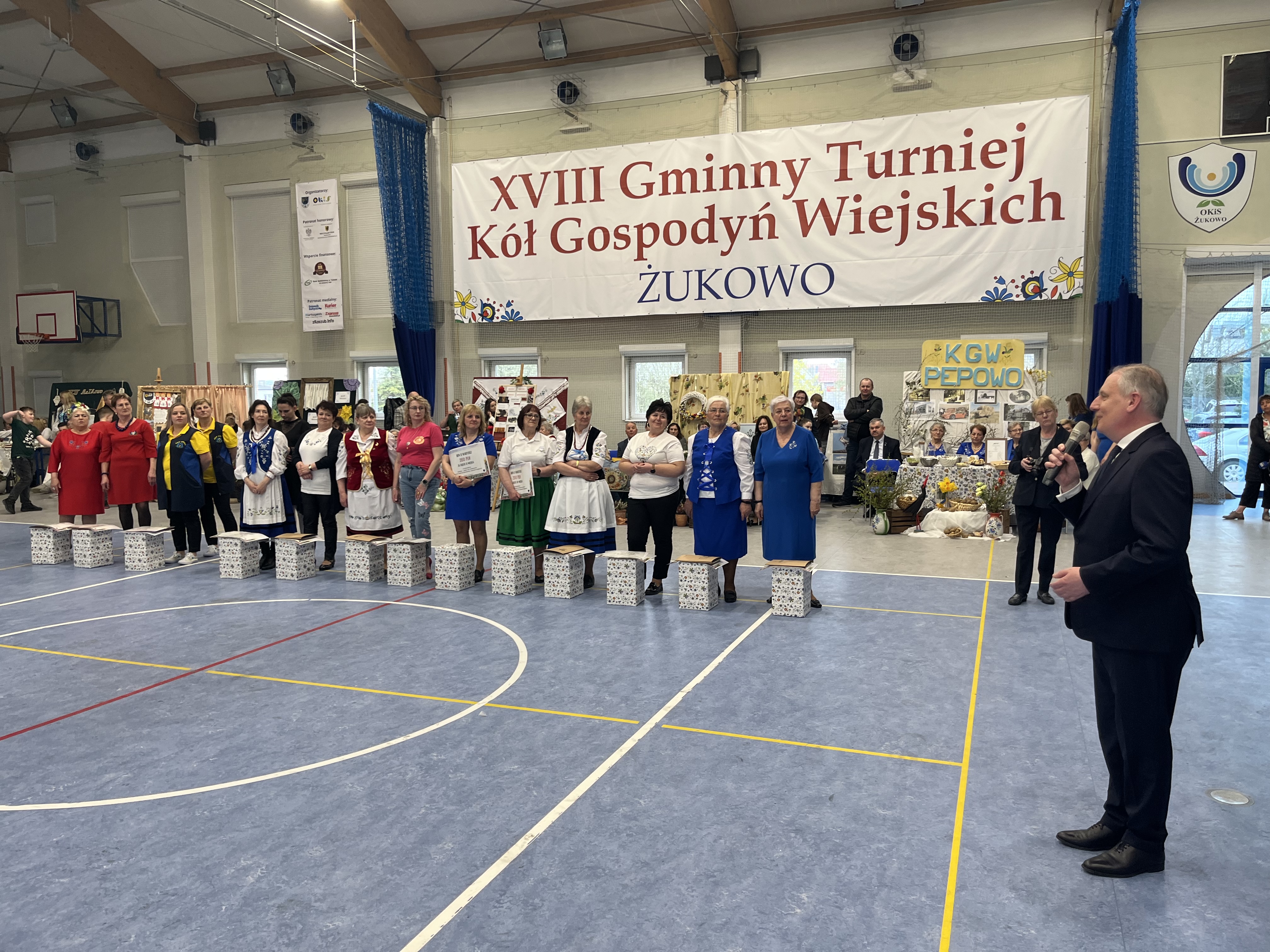 – Nasze Panie zaprezentowały dziś wielką siłę. Świadczy to też o mocy tych organizacji, które mają bardzo dobry wpływ na nasze miejscowości. Ta rywalizacja w ramach turnieju to wspaniałe emocje budujące jeszcze piękniejsze społeczeństwo. Panie i panowie zrzeszeni w KGW utrzymują i tworzą tożsamość naszej gminy. Wykorzystują do tego naszą kulturę, tradycję, kaszubszczyznę oraz nowoczesność. To piękne, że nasze instytucje robią to z takim zapałem, werwą i nawet przekąsem. Tu się wszystko zgadza i jeszcze całość jest pozytywnym przekazem. Dziękuję za to! Jestem dumny z naszych KGW – podkreślił burmistrz gminy Żukowo, Wojciech Kankowski.