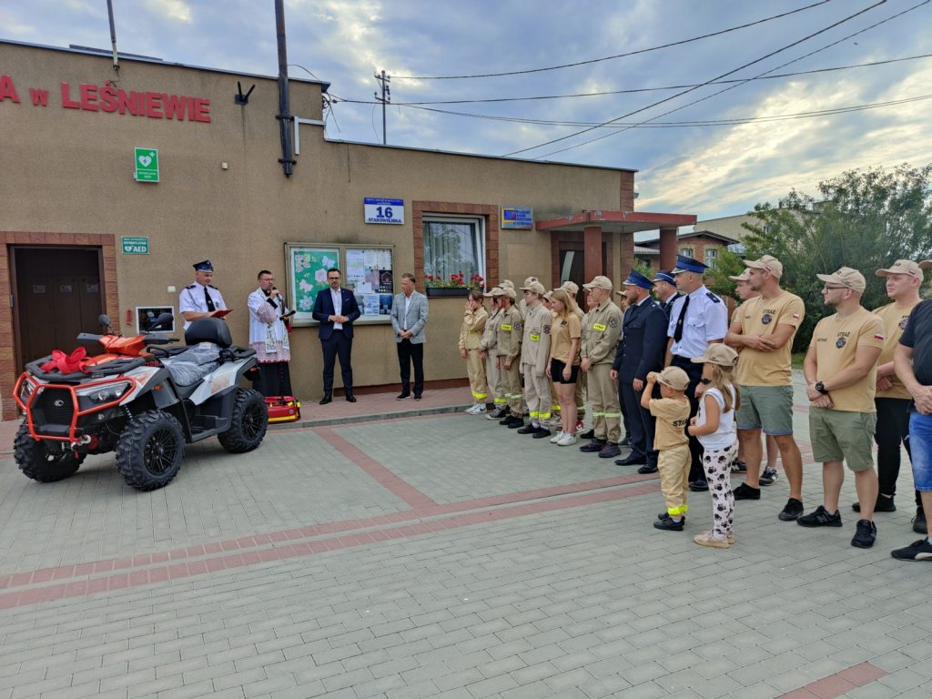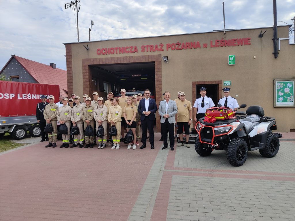 Nowoczesny quad do działań w trudnym terenie, agregat prądotwórczy oraz torba dla ratownika medycznego wraz z wyposażeniem. To nowy sprzęt dla strażaków ochotników z Leśniewa w gminie Puck, który w piątek przywiózł Marcin Horała, wiceminister funduszy i polityki regionalnej oraz pomorski poseł Prawa i Sprawiedliwości.
