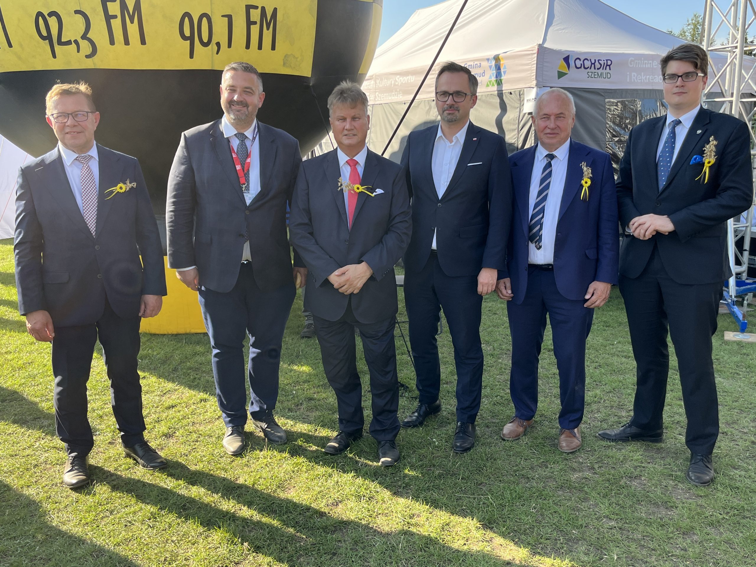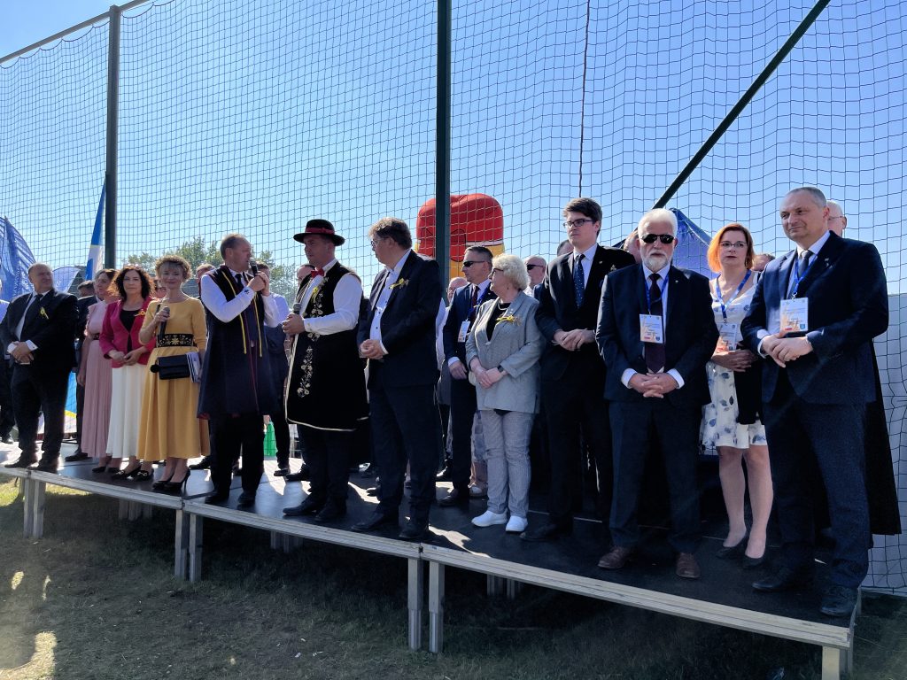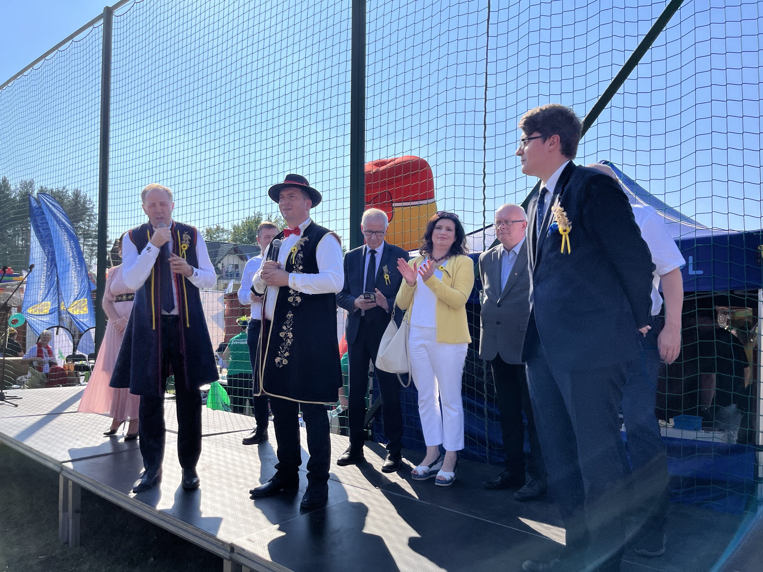 – Wielkie dwudniowe wydarzenie w Szemudzie. Słyszmy od wszystkim płynące z serca same pozytywy. Faktycznie jeździmy po różnych dożynkach i innych eventach samorządowych i podpatrujemy. U nas w gminie Szemud czuje się, że mamy zgrany zespół. Praca zespołowa moich współpracowników i innych jednostek przynosi takie efekty. Każdy oddaje tutaj swoje serce i to jest bardzo widoczne. Chcę za to tutaj bardzo serdecznie podziękować. Jestem dumny, że udało się nam to zbudować w gminie Szemud. Proszę popatrzyć na tegoroczny korowód dożynkowy. To przecież praca naszych sołectw, gospodarzy i mieszkańców. Pomysłowość i pasja. Widać wielką zabawę, choć wiemy, jak trudno dziś zorganizować się i po pracy zrekonstruować maszyny, odświeżyć czy też ustroić i przyzdobić to wszystko. Myślę, że nasz tegoroczny wieniec dożynkowy to pokazuje – w kształcie ziemi, gdzie na szczycie jest godło Polski, herb województwa i naszej gminy, a na naszej orbicie wszystkie 23 herby naszych sołectw. To nasza wielka i mała ojczyzna do niej jesteśmy przywiązani i razem tworzymy coś wielkiego, coś pięknego – przyznawał gospodarz dożynek wojewódzkich, wójt gminy Szemud Ryszard Kalkowski.