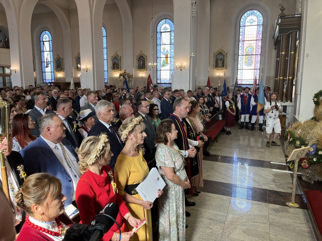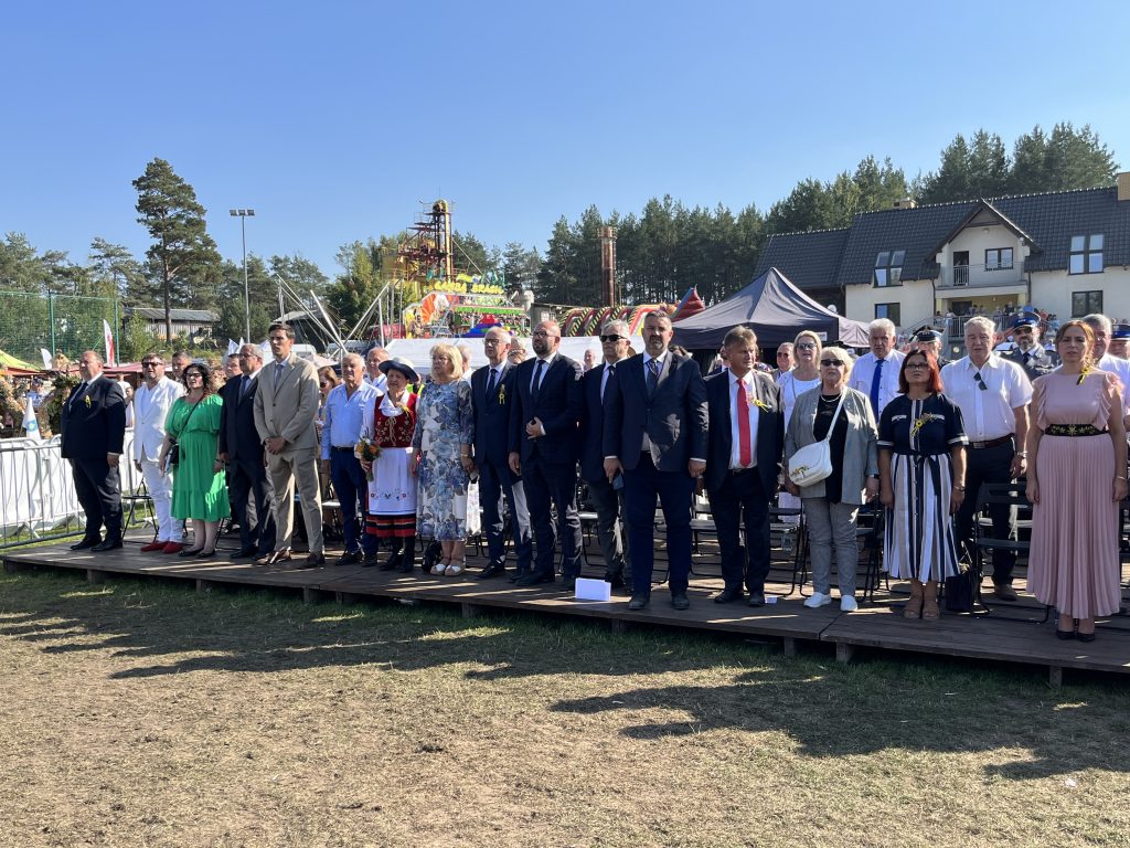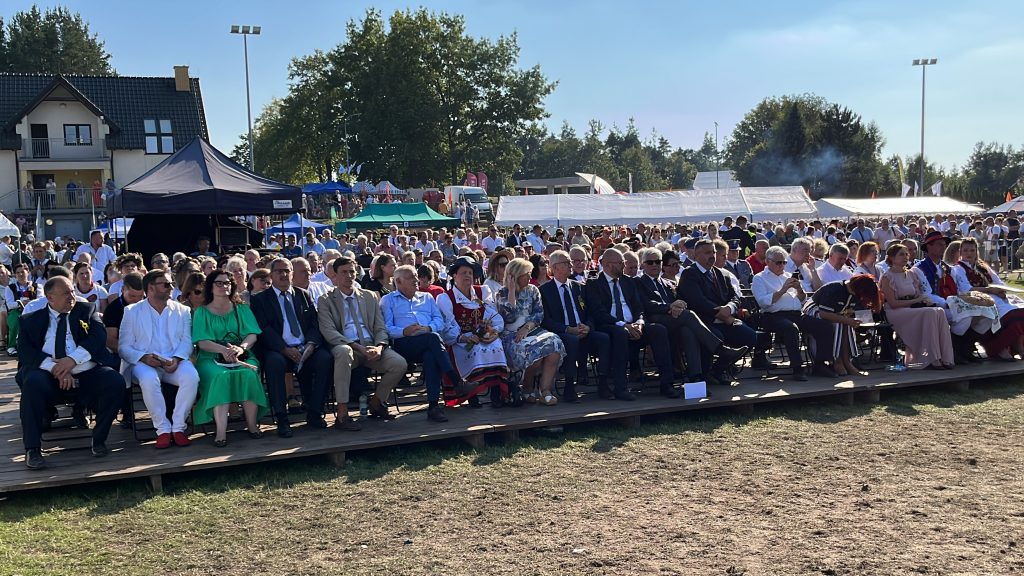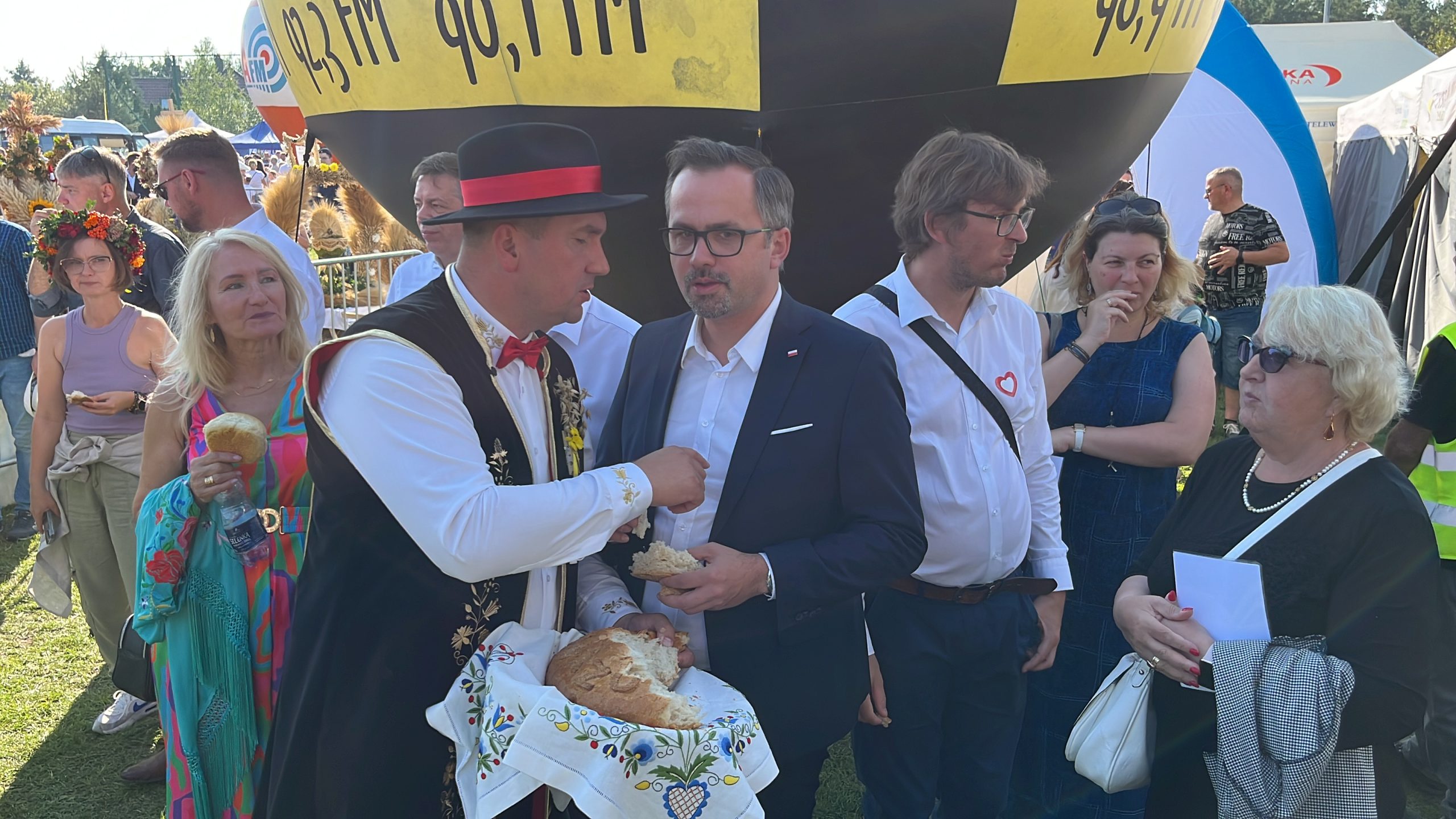 – Przełykam właśnie ostanie kęsy przepysznego dożynkowego chleba. To jeden z elementów tej pięknej tradycji, żeby tym chlebem się podzielić, wtedy nigdy nam go nie zabraknie. Teraz wielu z nas już pracuje przy biurku, to także ciężka praca potrafi być, ale jednak zupełnie inna. To jest ten moment pamięci o trudzie rolników, kiedy trzeba zupełnie bladym świtem wstawać i nieraz do zmroku, a jak są żniwa to się zdarza że nawet po zmroku ciężko pracować, żeby tego chleba nie zabrakło na naszym stole. Przez chleb rozumiemy wszystkie produkty żywnościowe, on je symbolizuje. Więc dziękujemy rolnikom. Także same w sobie dożynki to piękna i ważna tradycja, którą trzeba kultywować, bo tradycja to tożsamość, a tożsamość stanowi to, kim jesteśmy, skąd przychodzimy i również dokąd zmierzamy – przypominał wiceminister funduszy i polityki regionalnej Marcin Horała.