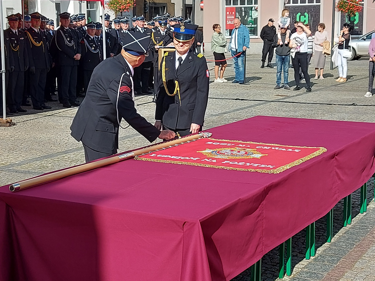 – Uroczystość wręczenia sztandarów to wyjątkowa okazja, by przekazać gratulacje dla strażaków i pracowników cywilnych. Pragnę złożyć wam wyrazy uznania za wspólne budowanie bezpieczeństwa naszej ojczyzny. Dzisiejsza ceremonia to symboliczne podsumowanie działalności od początku powstania obu jednostek. Daty graniczne na sztandarach to też ilość udzielonej pomocy, trwały i żywy wzorzec, z którego czerpią kolejne pokolenia – napisał w liście do strażaków komendant główny PSP gen. brygadier Andrzej Bartkowiak.