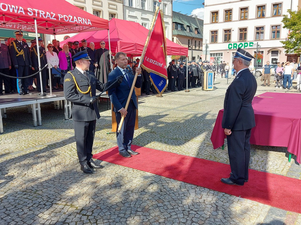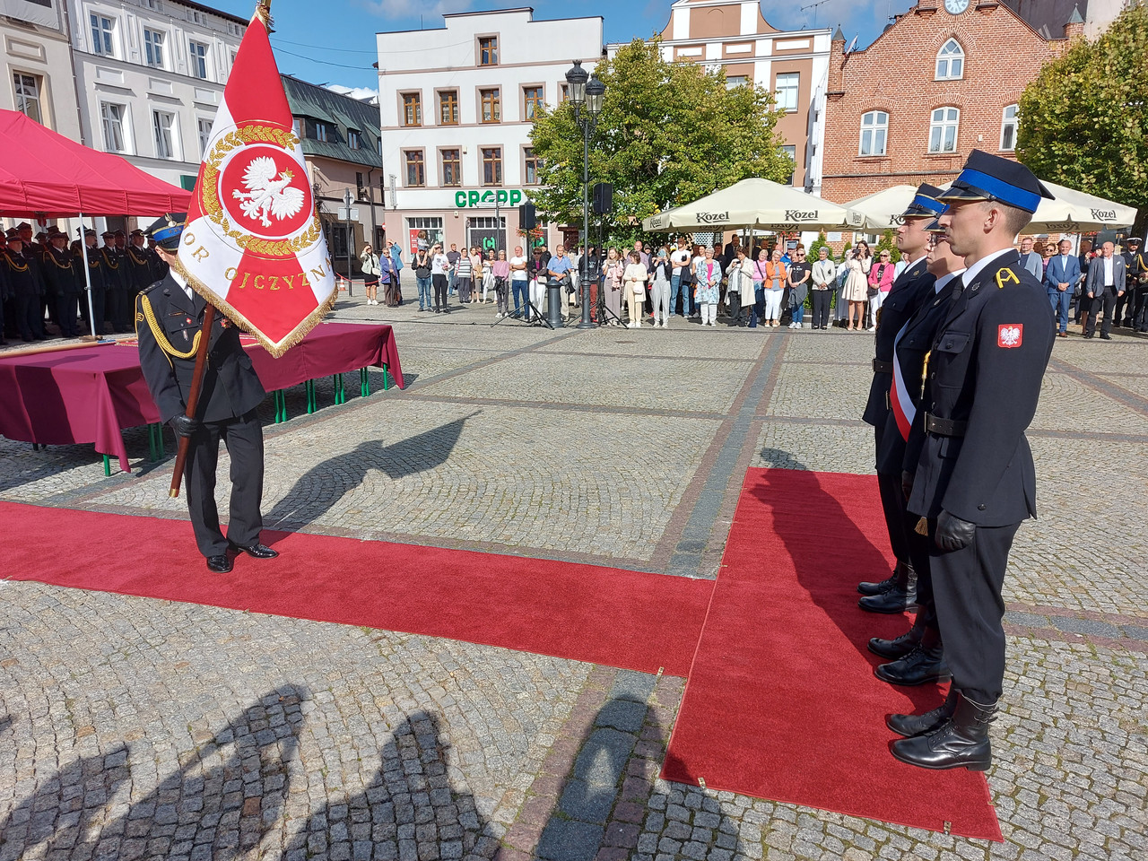 Komendant wojewódzki PSP zaznaczał, że wspólna uroczystość na rynku to wyjątkowy wyraz wdzięczności od mieszkańców.