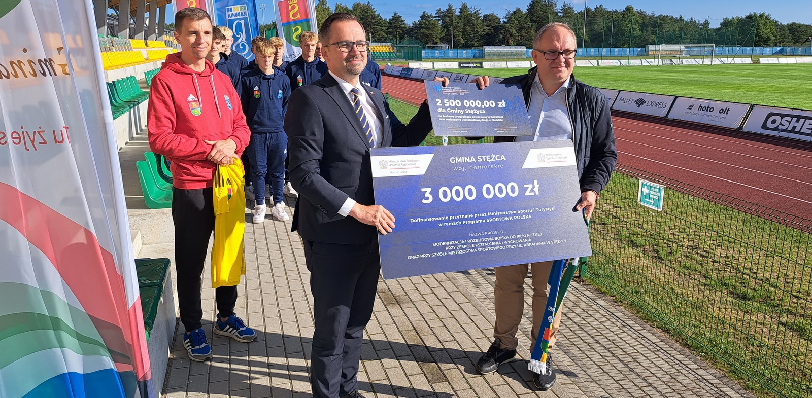 Ponad pięć milionów złotych rządowych dotacji dla Stężycy. Samorząd odebrał właśnie symboliczne czeki, które przekazał Marcin Horała, wiceminister Funduszy i Polityki Regionalnej. na budowę dróg i infrastruktury sportowej. W ciągu dwóch lat rozbudowane będą boiska przy Szkole Mistrzostwa Sportowego. Obiekty, na których gra 2-ligowa Radunia Stężyca, powiększą się i będą bardziej profesjonalne.