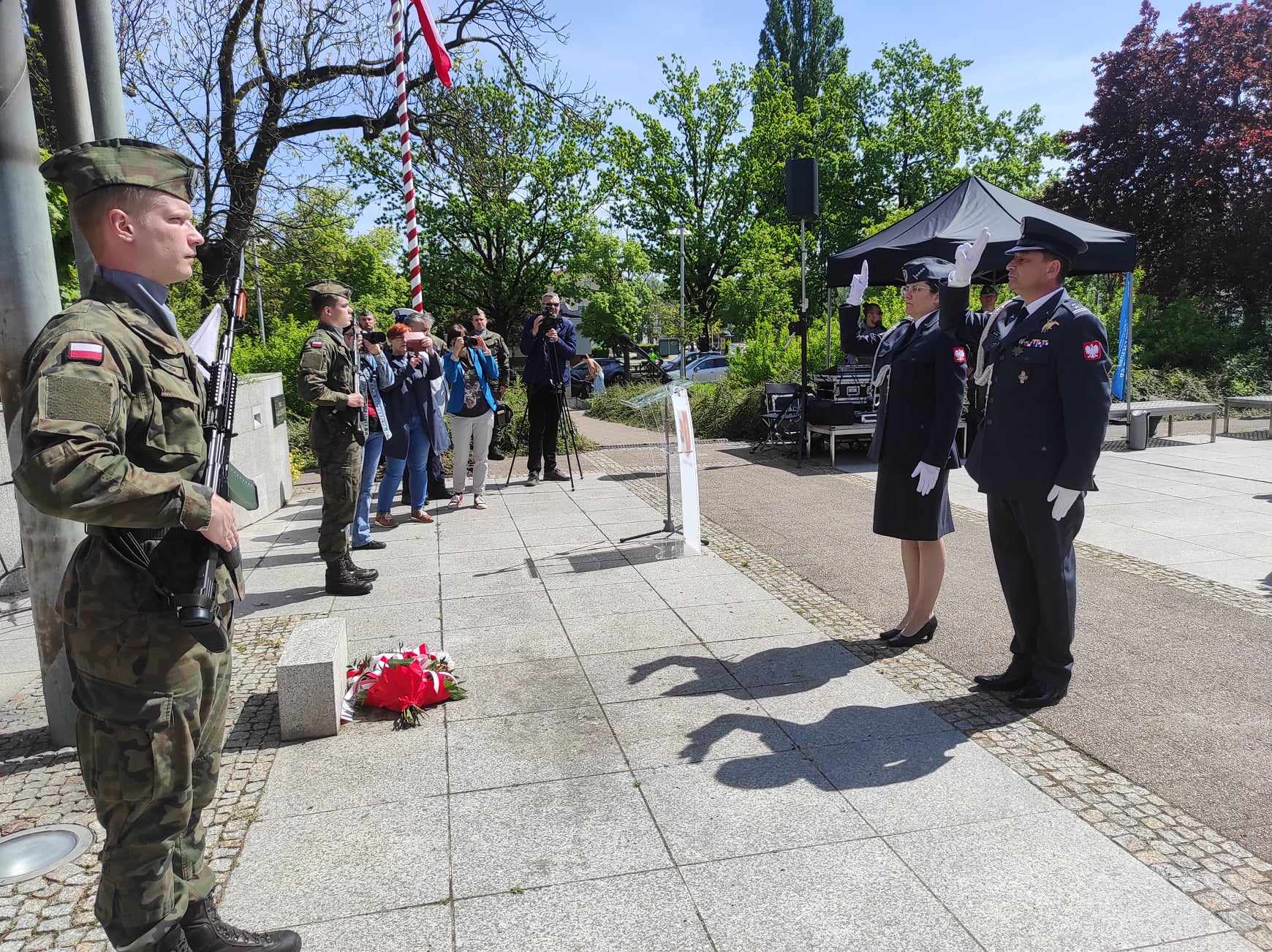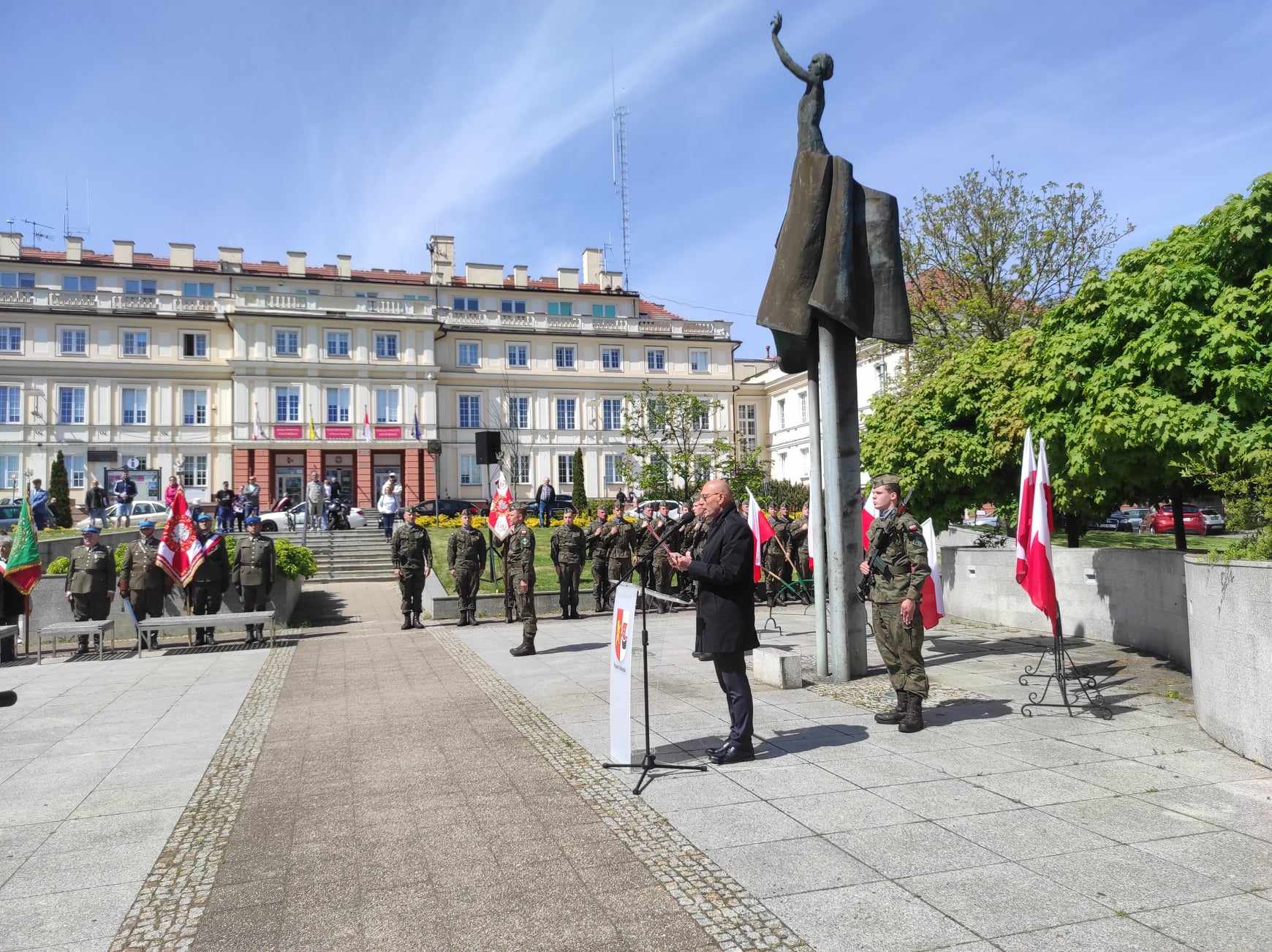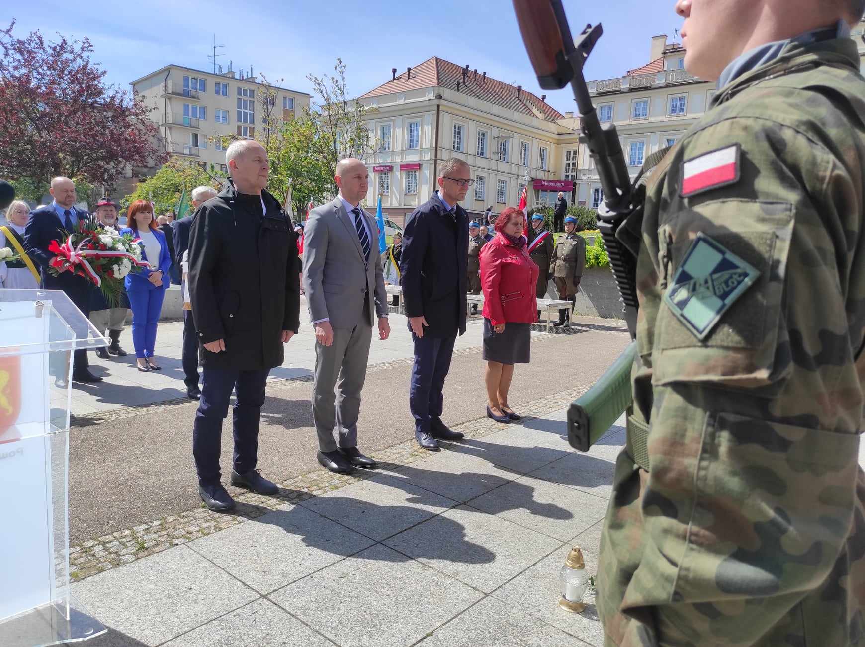 Na placu Jana Pawła II odbyły się uroczystości w asyście wojskowej. Odśpiewano tam hymn państwowy, odczytano apel pamięci, a żołnierze 49. Bazy Lotniczej oddali salwę honorową.
