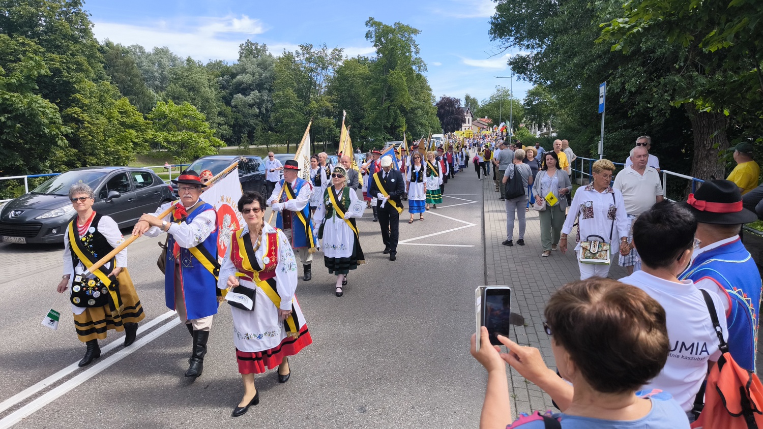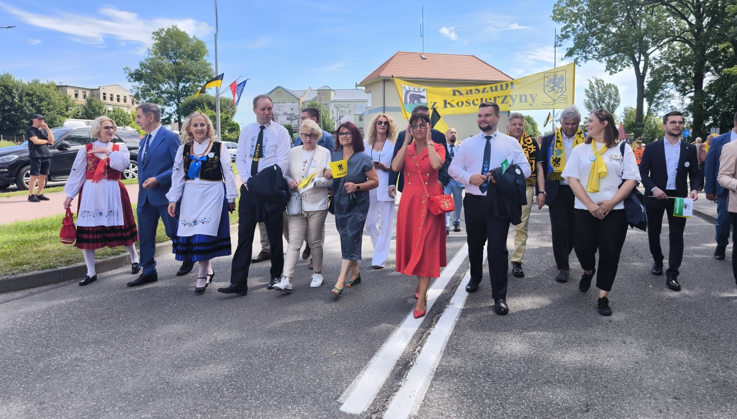 Uczestnicy idą w barwnym pochodzie na XXV Światowy Zjazd Kaszubów (fot. Radio Gdańsk/Piotr Lessnau)