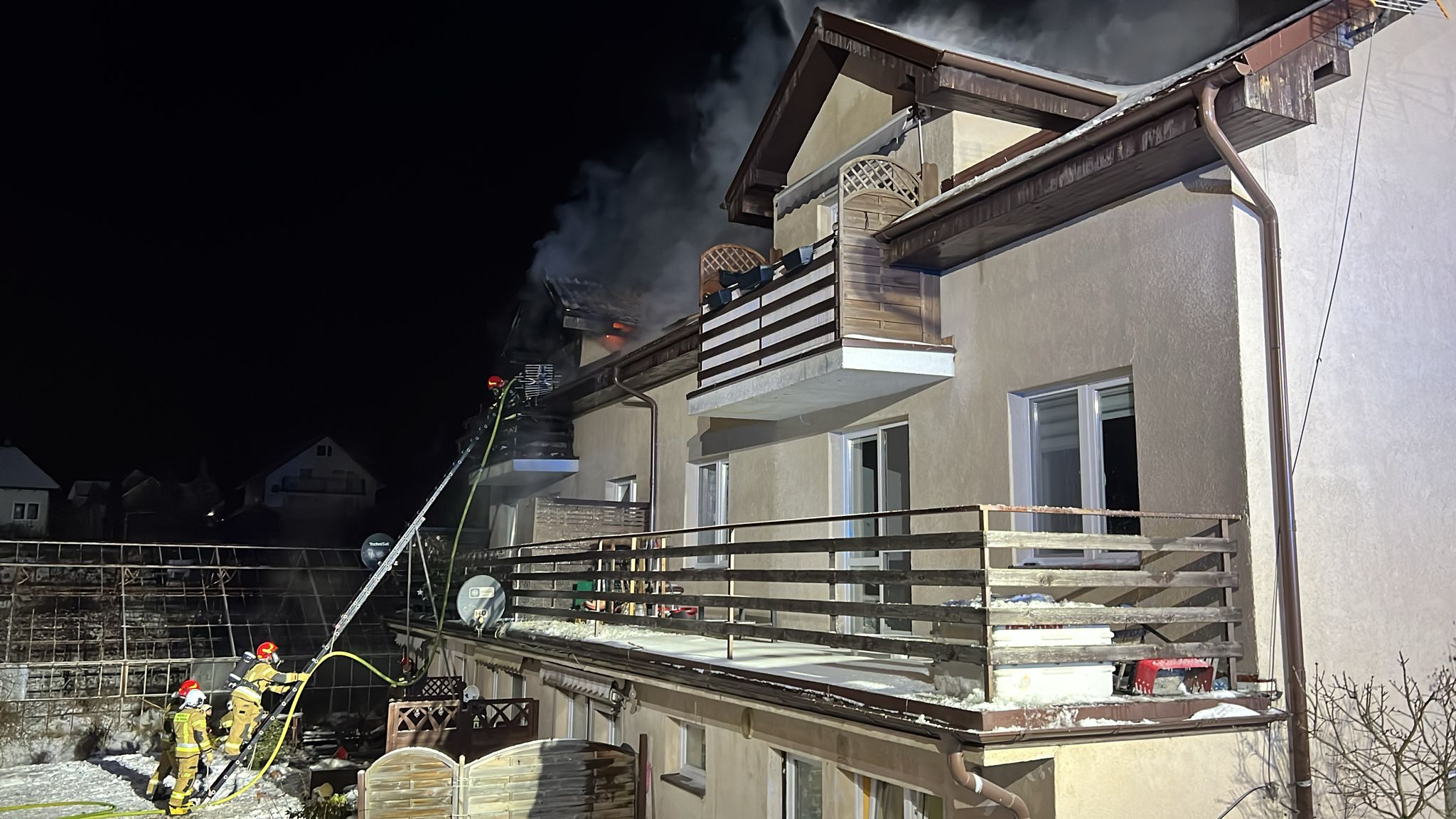 – Przed przybyciem straży pożarnej budynek opuściło 20 osób. W tym momencie strażacy są zmuszeni do częściowej rozbiórki dachu. Działania gaśnicze potrwają na pewno jeszcze kilka godzin – mówi aspirant Maciej Kuptz ze straży pożarnej w Pucku.