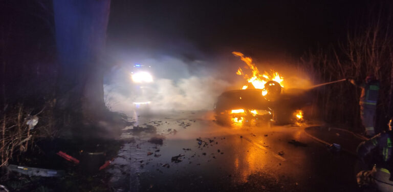 Poważny wypadek na drodze wojewódzkiej 213 między Werblinią a Zdradą w powiecie puckim. Jak potwierdza policja, samochód osobowy najpierw uderzył w drzewo i dachował, po czym zapalił się. Kierowca i pasażerka Skody zdążyli ewakuować się przed przyjazdem służb i z obrażeniami trafili do szpitala. Oboje byli trzeźwi.
