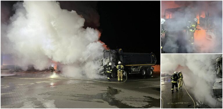 Około godziny 2:00 ogień został zauważony na placu firmy transportowej w miejscowości Dąbrówka.