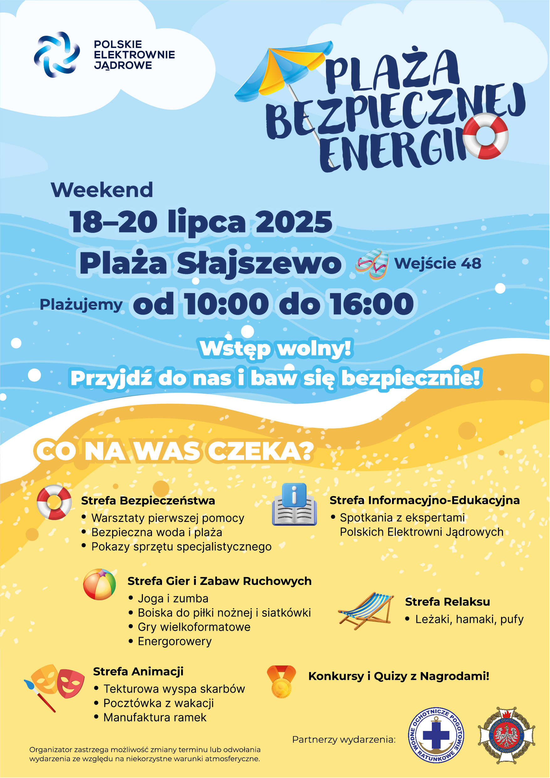 W rozpoczynający się weekend plaża w Słajszewie przemieni się w miejsce pełne atrakcji dla wszystkich miłośników aktywnego wypoczynku. Spółka Polskie Elektrownie Jądrowe zaprasza na wydarzenie „Plaża bezpiecznej energii”.