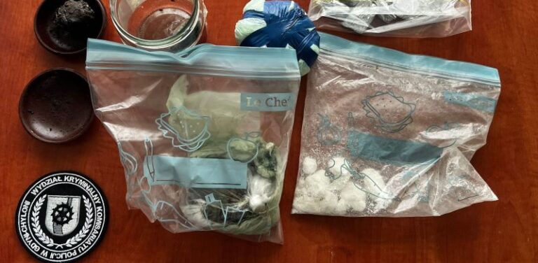 Funkcjonariusze w trakcie przeszukania mieszkania zatrzymanego znaleźli i zabezpieczyli łącznie prawie 480 gramów środków odurzających i substancji psychotropowych – w tym amfetaminę z której można byłoby przygotować ponad 460 porcji oraz haszysz – w ilości prawie 1500 porcji. Dodatkowo kryminalni znaleźli nielegalną plantację konopi indyjskich. W pomieszczeniach mieszkalnych policjanci zabezpieczyli również inne akcesoria i opakowania świadczące o przygotowaniu do dalszego obrotu środkami odurzającymi.