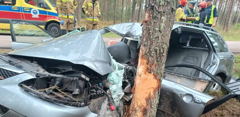 Do wypadku doszło w sobotni poranek w miejscowości Podlesie w gminie Koczała. Z nieustalonych jeszcze przyczyn samochód osobowy, który podróżowały cztery osoby zjechał z drogi i uderzył w drzewo.