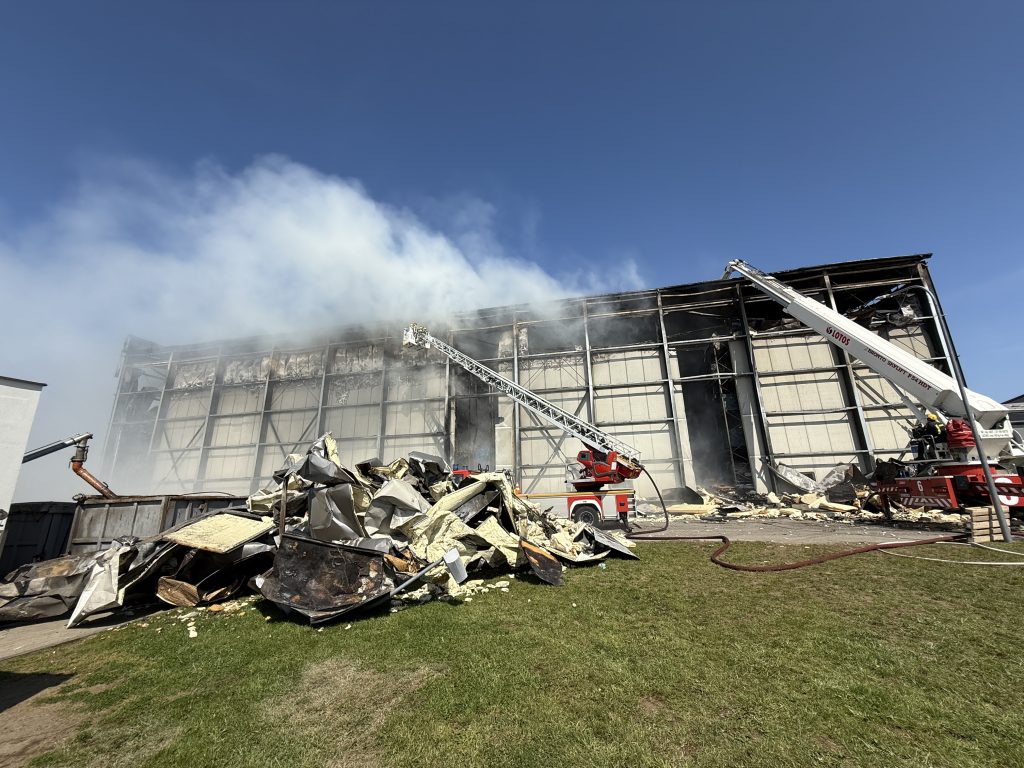Jednocześnie zagrożenie dla ratowników stanowi sama konstrukcja obiektu – przekrycie dachu i ściany, które zostały znacznie uszkodzone i zdeformowane przez oddziaływanie pożaru” – informują przedstawiciele PSP w komunikacie.