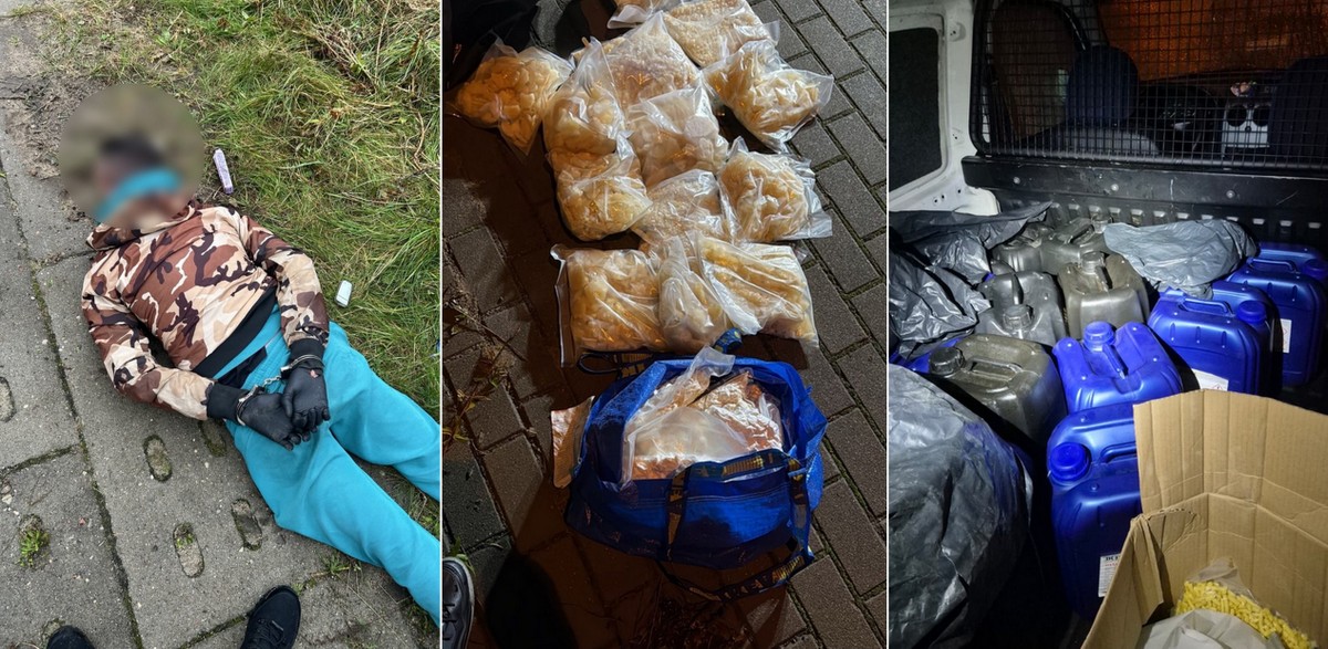 Zatrzymany obywatel Ukrainy został doprowadzony do policyjnego aresztu. Usłyszał zarzuty dotyczące posiadania znacznych ilości środków odurzających, wprowadzania ich do obrotu, a także – w związku z zabezpieczonymi substancjami chemicznymi – może usłyszeć zarzut produkcji narkotyków.