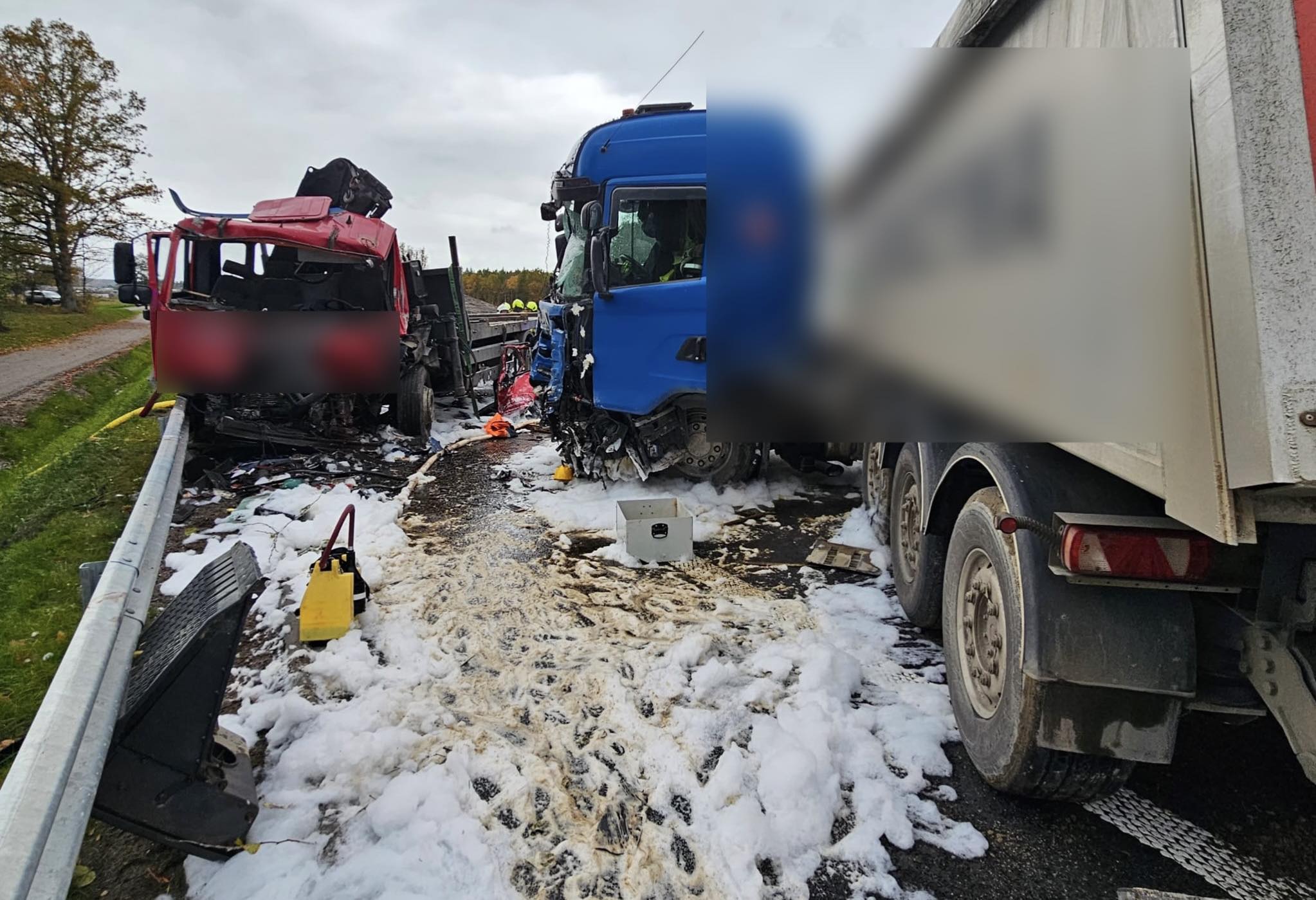 Jedna osoba nie żyje, a dwie zostały ranne w wypadku trzech pojazdów ciężarowych i osobówki w Bożepolu Wielkim na trasie Kaszubskiej – odcinek Strzebielino – Lębork.