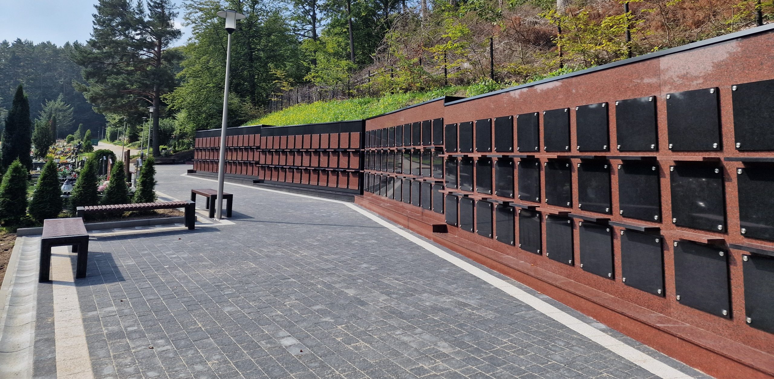 Plac przy kolumbarium wyposażono w ławki. Wykonano także oświetlenie, by poprawić bezpieczeństwo i ułatwić poruszanie się po terenie, szczególnie w okresie jesienno-zimowym.